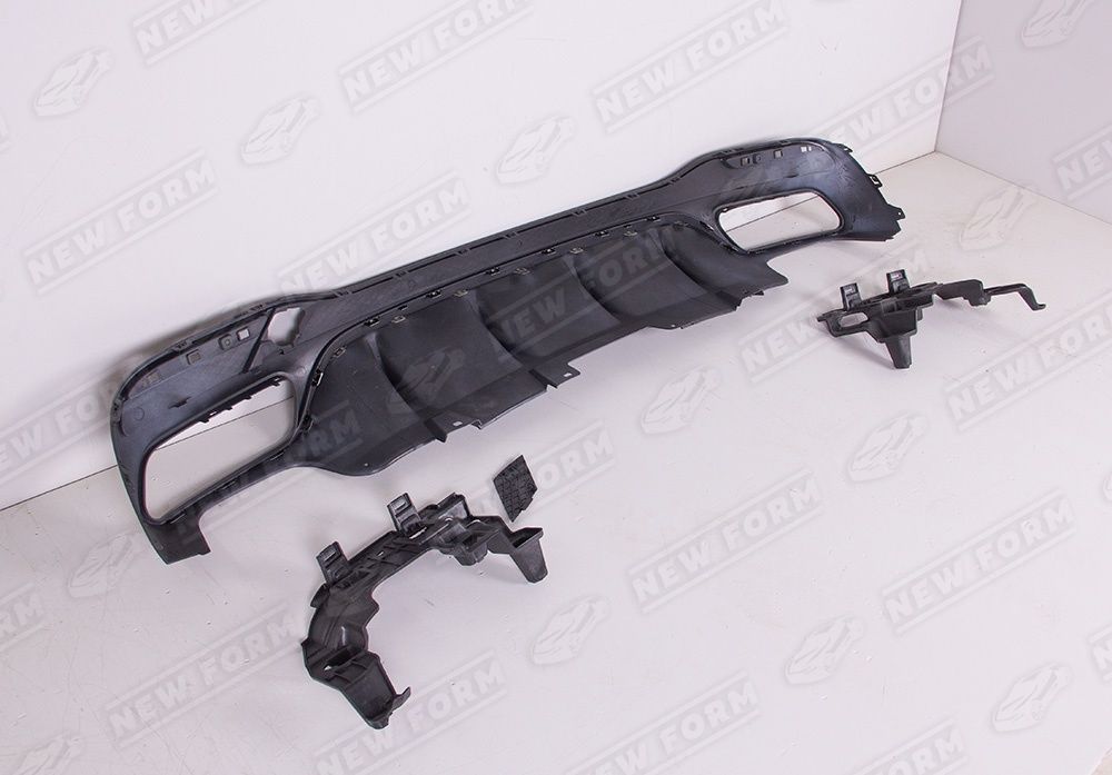 В комплект входит: диффузор заднего бампера 6.3 AMG, молдинг диффузора, заглушка буксировочной петли, кронштейны насадок, комплект крепежа.
