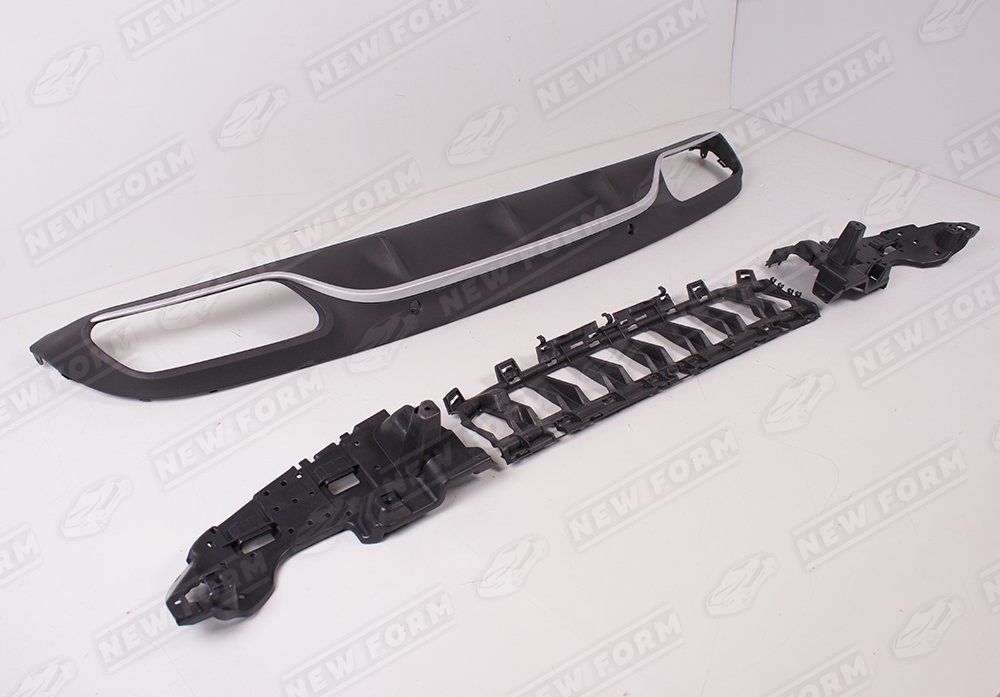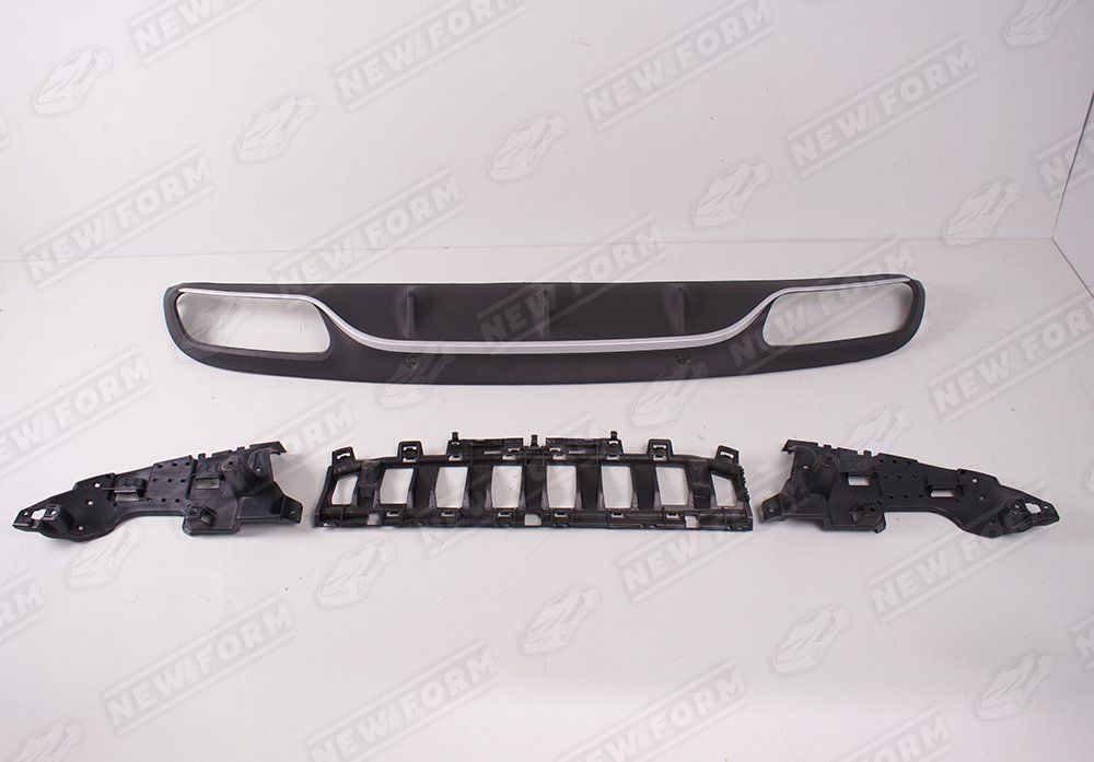 В комплект входит: диффузор заднего бампера 6.3 AMG, центральный усилитель, кронштейны насадок, заглушка буксировочной петли, молдинг в диффузор, комплект крепежа.