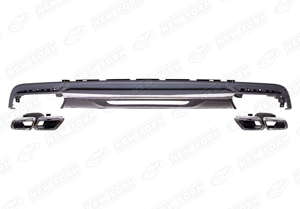 Диффузор заднего бампера с насадками 6.3 AMG для автомобилей Mercedes S-class W222. Данный тюнинг комплект предназначен для установки на автомобили Mercedes S-class W222 с 2013 по 2017 год выпуска в AMG пакете. Для автомобилей обычной версии требуется замена заднего бампера. Диффузор заднего бампера AMG выполнен из оригинального ABS пластика. Насадки на глушитель - нержавеющая сталь. Диффузор с насадками 6.3 AMG устанавливаются четко в штатные места автомобиля без доработок. Диффузор AMG поставляется под окрас. Насадки на глушитель 6.3 AMG хромированные. На насадки нанесен логотип AMG.