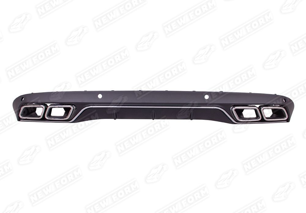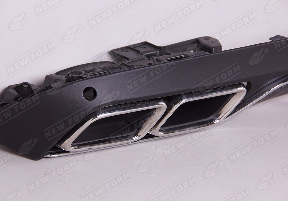 Диффузор заднего бампера 6.3 AMG хром с хромированными насадками для автомобилей Mercedes C-class W205. Данный комплект предназначен для установки на автомобили Mercedes C-class W205 стандартной версии, без AMG пакета. Диффузор выполнен из оригинального ABS пластика. Насадки на глушитель - нержавеющая сталь. Диффузор с насадками 6.3 AMG устанавливаются четко в штатные места заднего бампера без доработок. Диффузор выполнен в черном цвете, молдинг диффузора хромированный. Насадки на глушитель выполнены в цвете хром. На насадки нанесен логотип AMG.