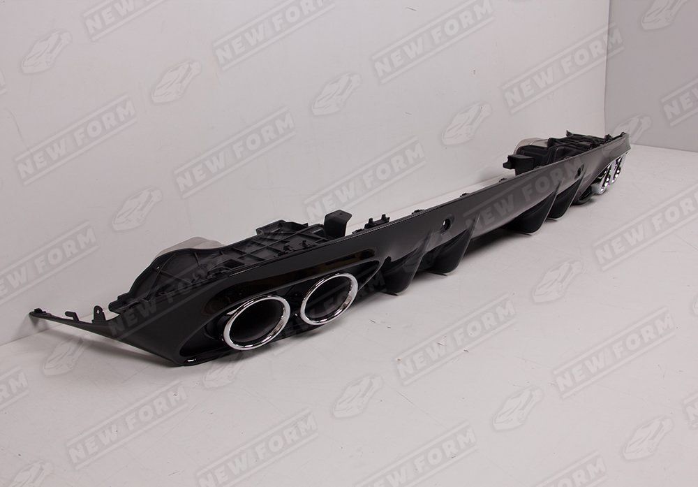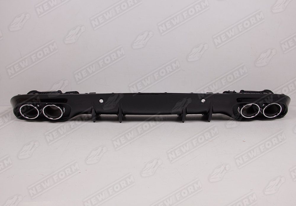 Диффузор заднего бампера 4.3 AMG с хромированными насадками для автомобилей Mercedes C-class W205 Coupe рестайлинг. Данный комплект предназначен для установки на автомобили Mercedes C-class W205 Coupe с 2018 года выпуска в AMG пакете. Для автомобилей стандартной версии требуется замена заднего бампера. Диффузор выполнен из оригинального ABS пластика. Насадки на глушитель - нержавеющая сталь. Диффузор с насадками 4.3 AMG устанавливаются четко в штатные места заднего бампера без доработок. Диффузор выполнен в черном глянцевом цвете. Насадки на глушитель выполнены в цвете хром.
