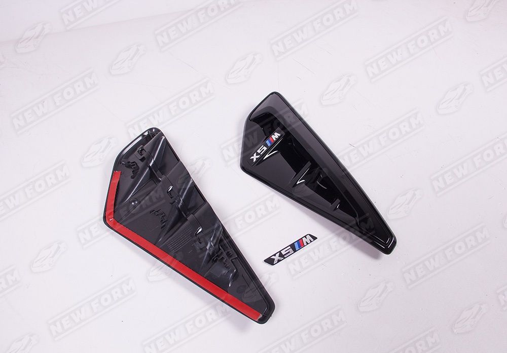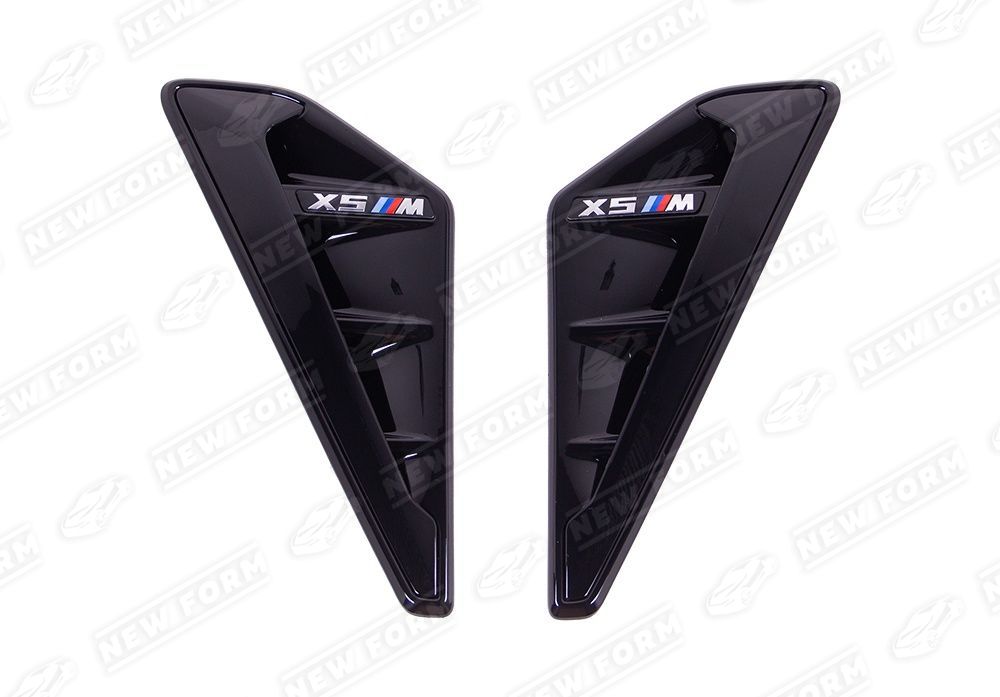 Жабры М на крылья для автомобилей BMW X5 G05. Данный комплект жабр предназначен для установки на автомобили BMW X5 G05 с 2018 года выпуска. Жабры М изготовлены из оригинального ABS пластика. Жабры устанавливаются четко в штатные места автомобилей без доработок. Жабры выполнены в черном цвете.