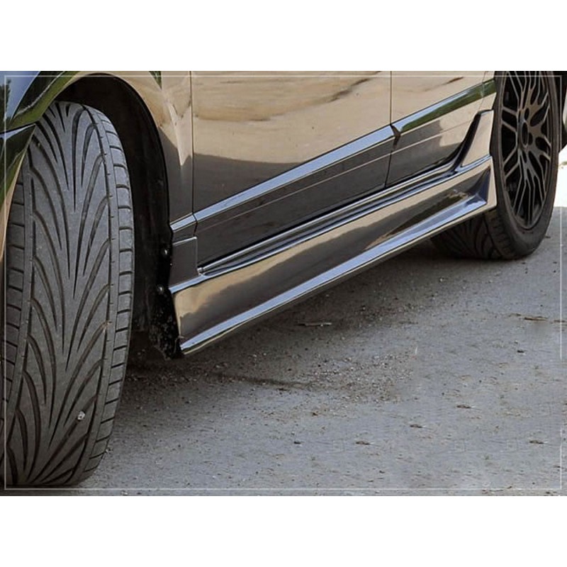Комплект пластиковых порогов Honda Cvic 8 в стиле Ings, производятся из прочного пластика и поставляются в техническом покрытии под покраску. Накладки на внешние пороги монтируются путем вклейки верхней кромки порогов и засверливанием с торцов колесных арок Civic 8, накладки на пороги при установке на автомобиль могут потребовать не значительной подгонки и доработки.