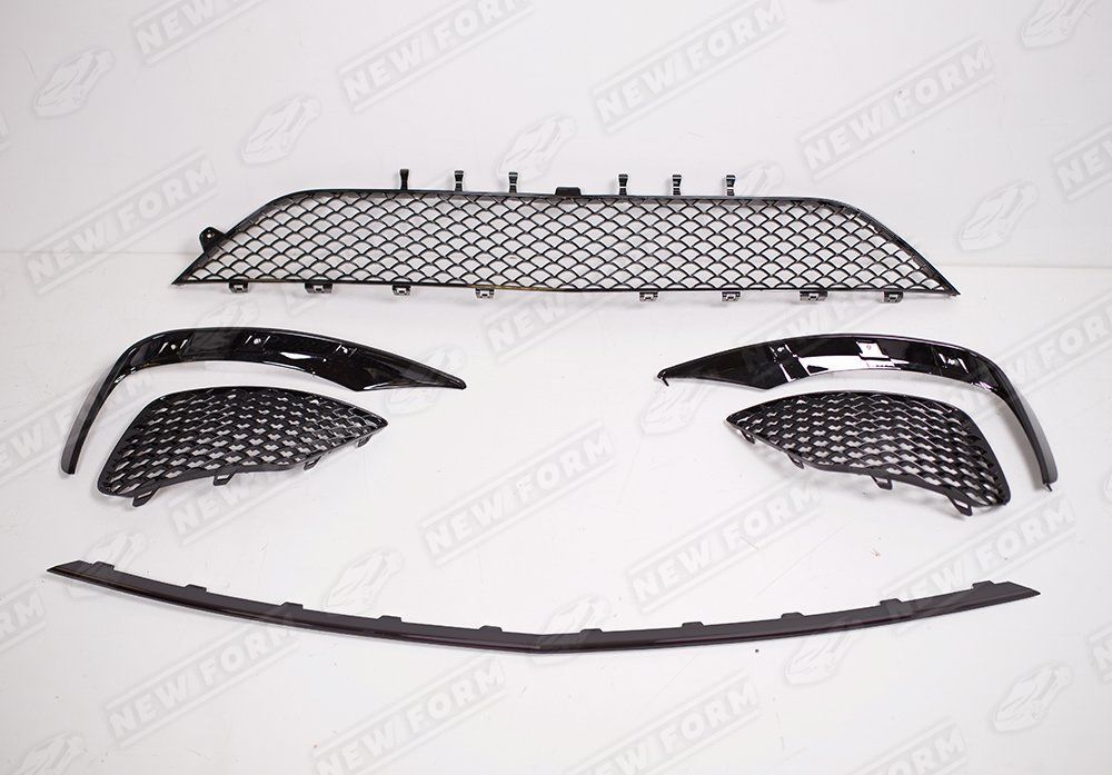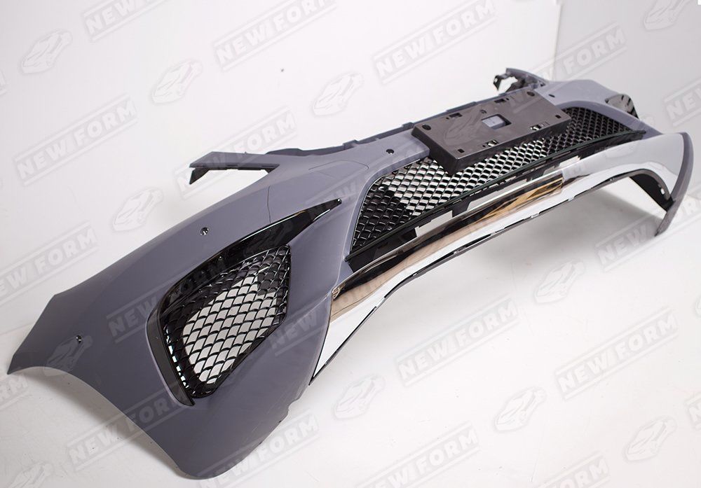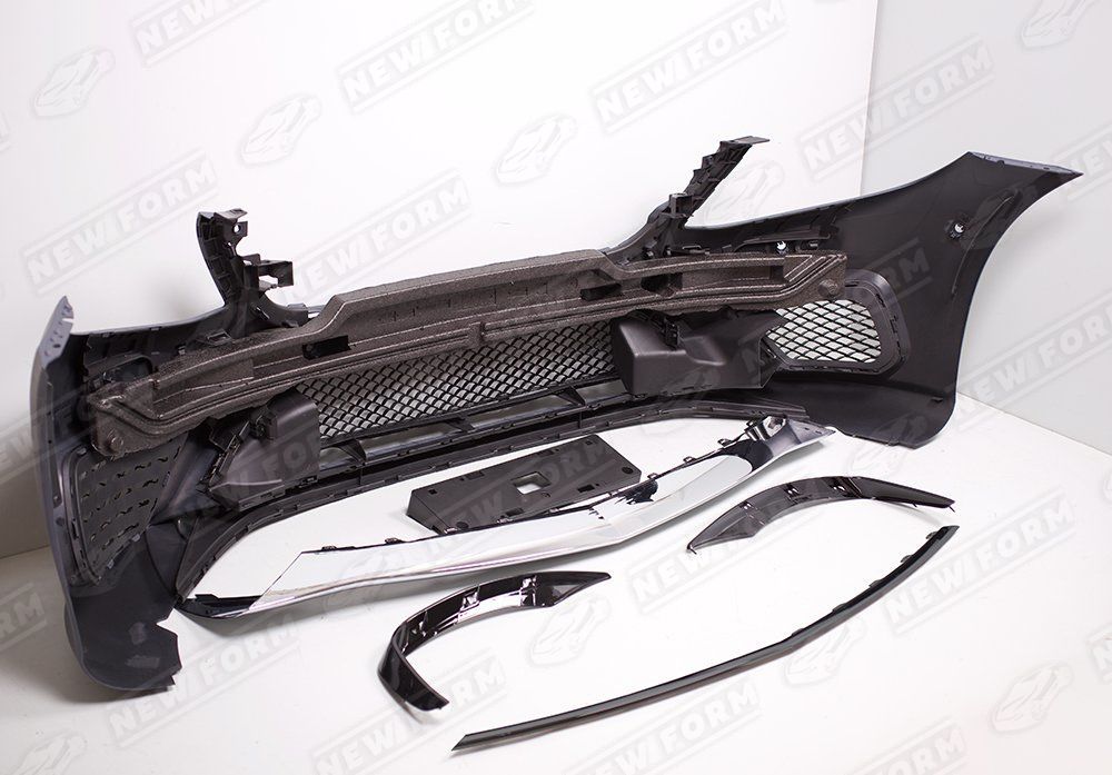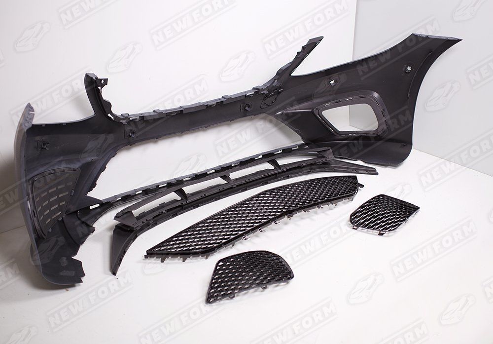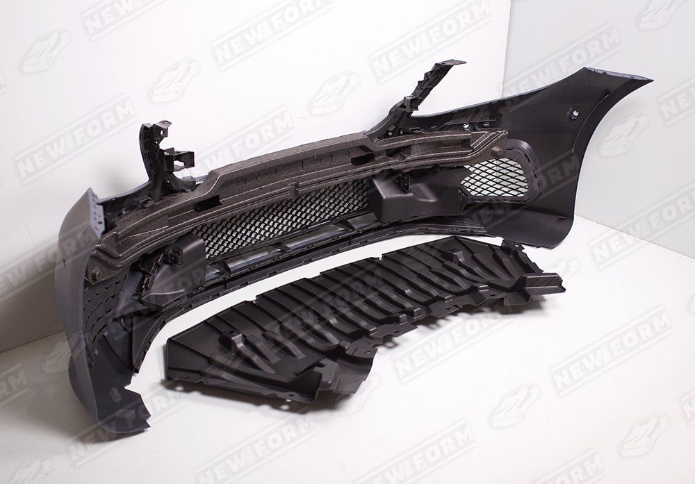 В комплект входит: передний бампер в сборе, центральная и боковые сетки, нижняя накладка, диффузор переднего бампера, накладки на воздуховоды, защита, подиум под номер, абсорбер, комплект крепежа.