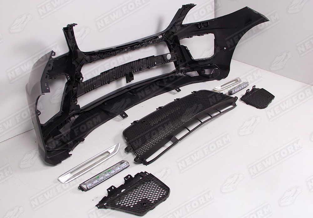 В комплект входит: передний бампер 6.3 AMG в сборе, юбка переднего бампера, накладки на ДХО, ходовые огни, комплект крепежа.