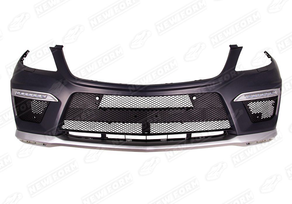 Бампер передний 6.3 AMG для автомобилей Mercedes ML W166. Данный бампер предназначен для установки на автомобили Mercedes M-class W166 с 2011 по 2015 год выпуска. Передний бампер изготовлен из оригинального ABS пластика. Бампер передний 6.3 AMG устанавливается четко в штатные места без доработок автомобиля. Вес ь необходимый для корректной установки бампера крепеж входит в комплект. Бампер поставляется под окрас. Юбка бампера и накладки на ДХО хромированные.