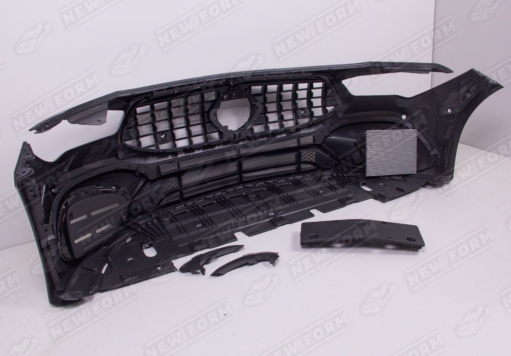 В комплект входит: передний бампер, решетка радиатора, комплект крепежа.
