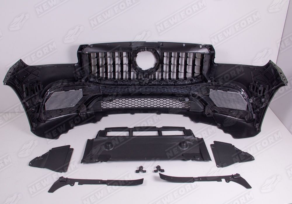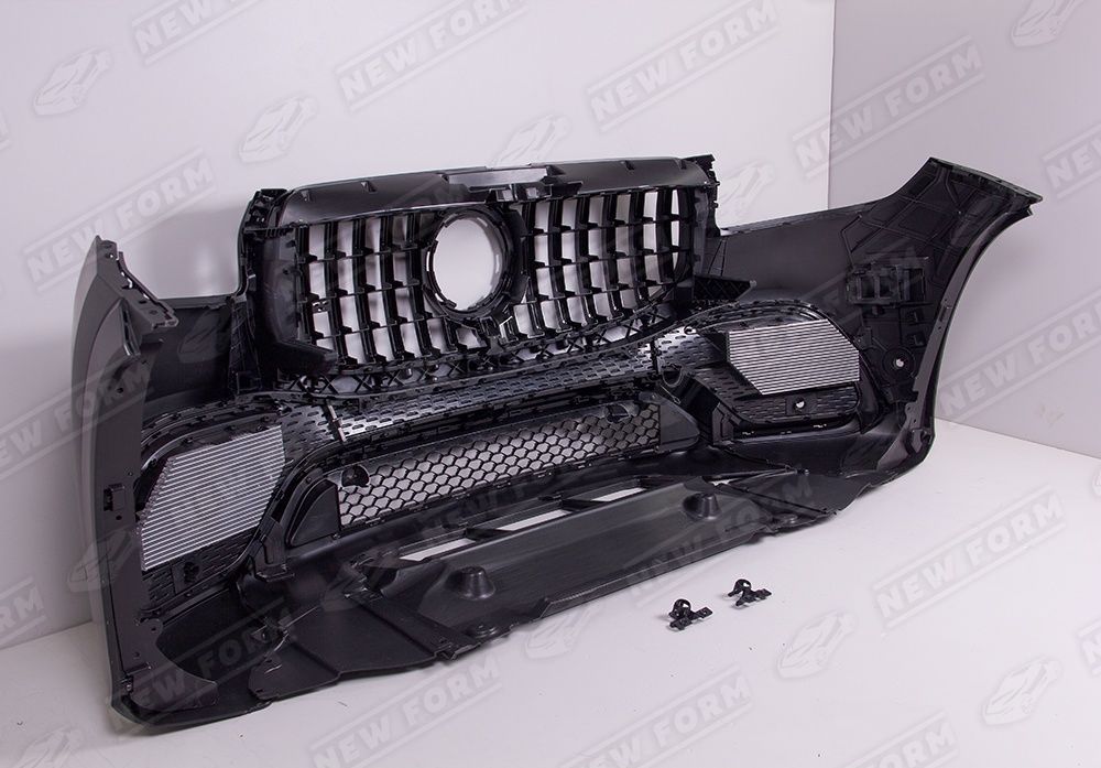 Передний бампер 63 AMG для автомобилей Mercedes GLS X167. Данный передний бампер предназначен для установки на автомобили Mercedes GLS X167 с 2019 года выпуска. Бампер 6.3 AMG выполнен из оригинального ABS пластика. Бампер устанавливается четко в штатные места автомобиля без доработок. Передний бампер поставляется под окрас. Решетка радиатора AMG GT выполнена в черном цвете.