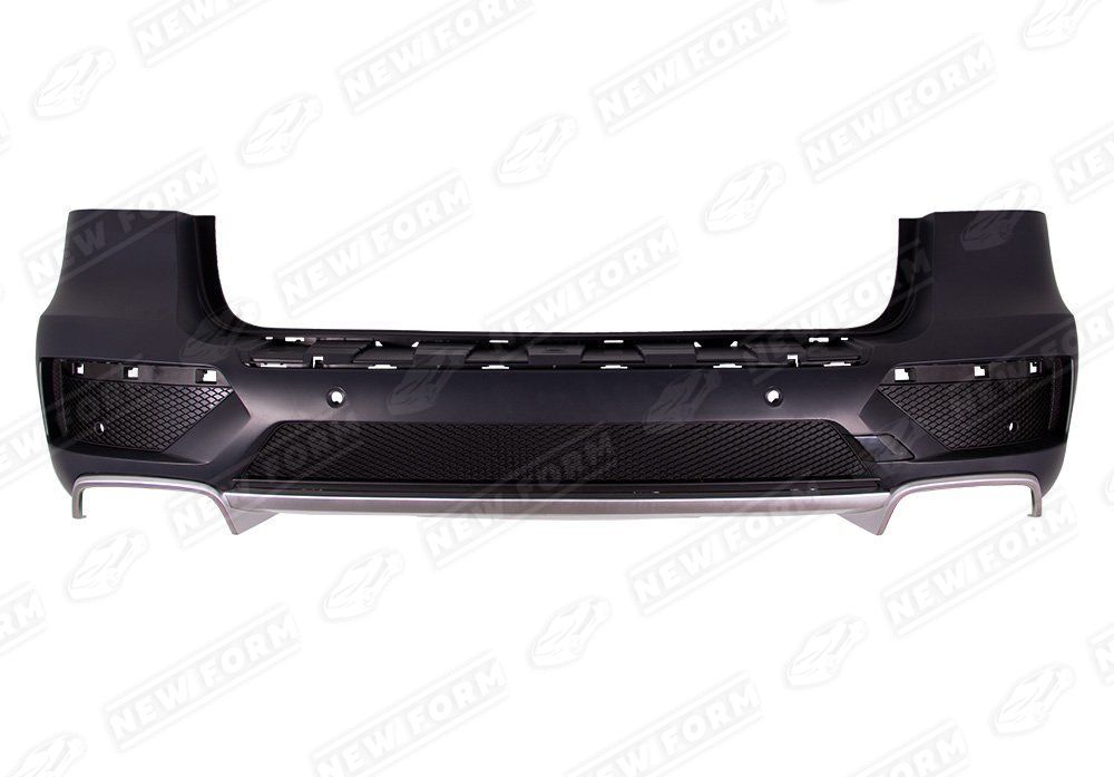 Бампер задний 6.3 AMG для автомобилей Mercedes ML W166. Данный бампер предназначен для установки на автомобили Mercedes M-class W166 с 2011 по 2015 год выпуска. Задний бампер изготовлен из оригинального ABS пластика. Задний бампер устанавливается четко в штатные места без доработок автомобиля. Весь необходимый для корректной установки заднего бампера крепеж входит в комплект. Бампер поставляется под окрас.