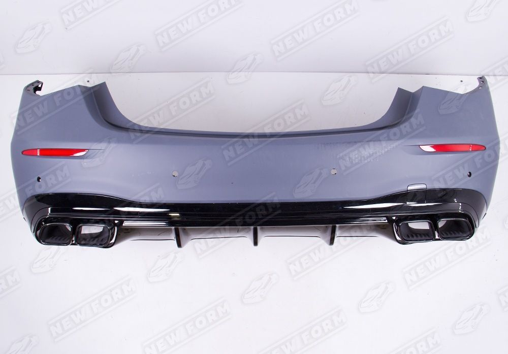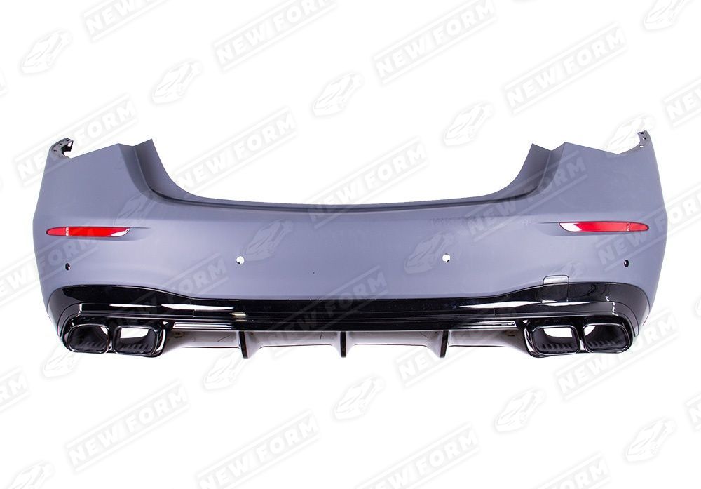 Бампер задний 6.3 AMG для автомобилей Mercedes S-class W223. Данный бампер предназначен для установки на автомобили Mercedes S-class W223 с 2020 года выпуска. Бампер задний и диффузор заднего бампера изготовлены из оригинального ABS пластика. Насадки на глушитель выполнены из нержавеющей стали. Задний бампер 63 AMG устанавливается четко в штатные места автомобиля и не требует доработок. Бампер задний поставляется под окрас. Насадки на глушитель черные.