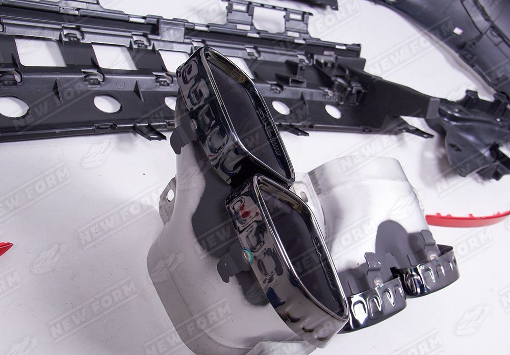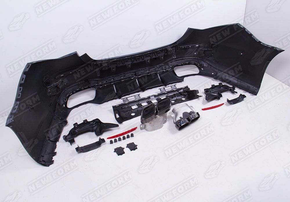 В комплект входит: задний бампер 63 AMG, диффузор заднего бампера 63 AMG, насадки на глушитель 63 AMG черные, комплект крепежа.