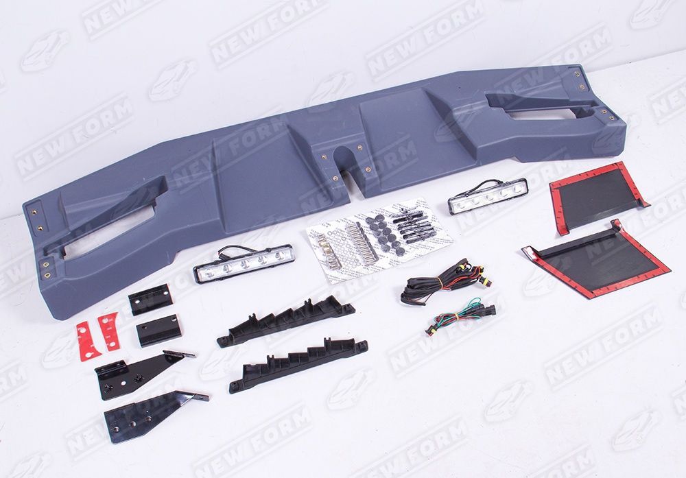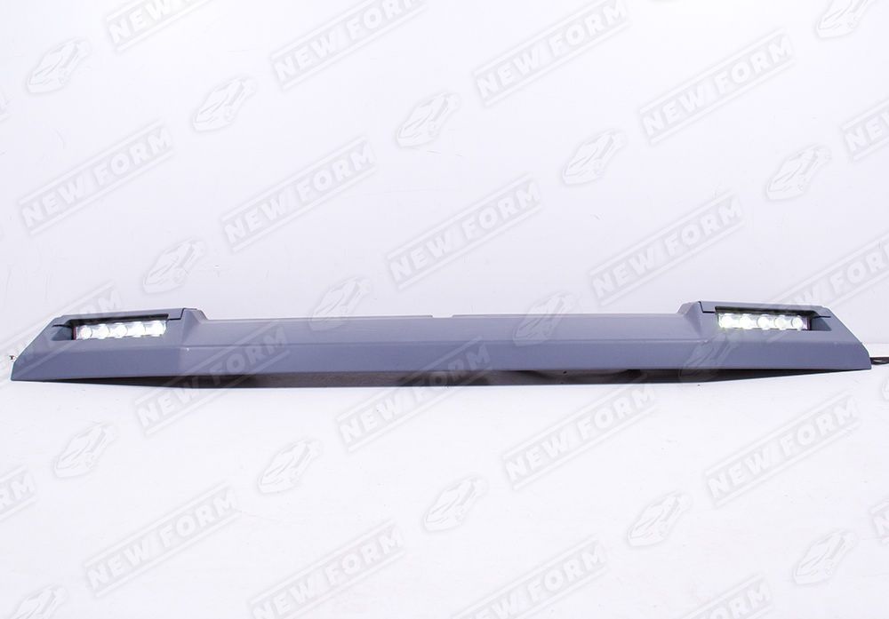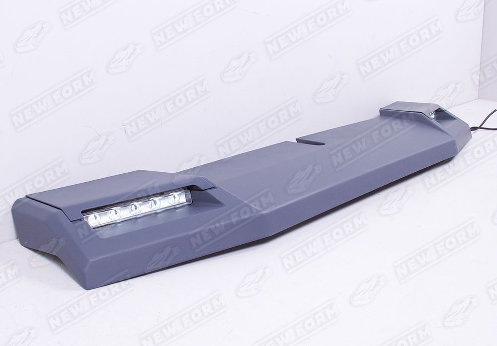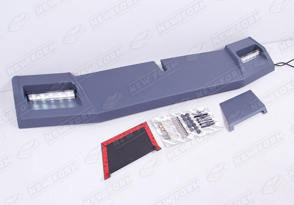Козырек с ходовыми огнями для автомобилей Mercedes G-class W463. Данный тюнинг комплект предназначен для установки на автомобили Мерседес Гелендваген с 1990 по 2018 год выпуска. Козырек выполнен из оригинального ABS пластика. Ходовые огни выполнены в цвете хром. Козырек поставляется под окрас.