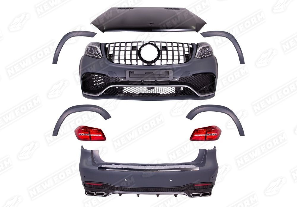 Комплект полной внешней переделки автомобиля Mercedes GL X166 в Mercedes GLS X166. Данный тюнинг комплект предназначен для установки на автомобили Mercedes GL X166 с 2012 по 2016 год выпуска. Все элементы комплекта переделки автомобиля устанавливаются четко в штатные места без доработок. Тюнинг комплект поставляется под окрас.