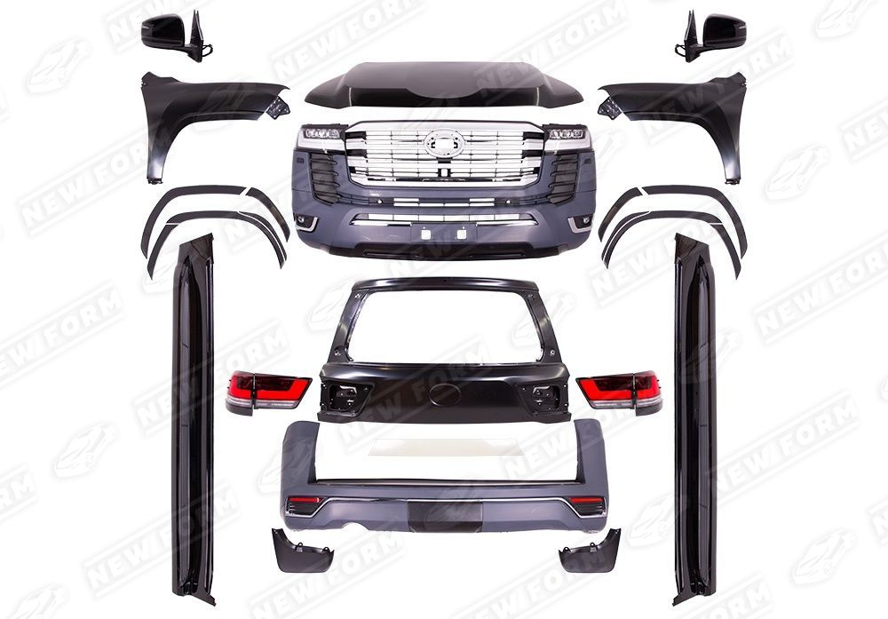 Комплект полный для рестайлинга автомобилей Toyota Land Cruiser 200. Данный комплект позволяет осуществить полный внешний рестайлинг кузова автомобиля Toyota Land Cruiser 200 с 2012 по 2015 год выпуска в версию Toyota Land Cruiser 300. Рестайлинг полностью выполнен из оригинальных материалов. Оптика оригинального качества. Комплектующие рестайлинга устанавливаются четко в штатные места и не требуют доработок. Комплект поставляется под окрас.