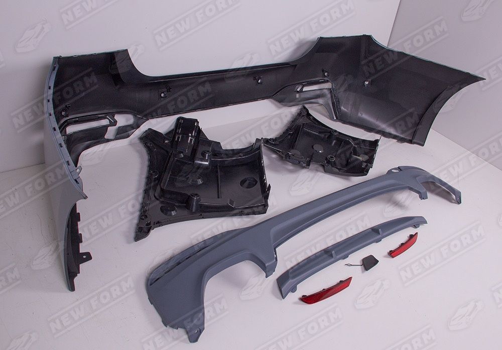 В комплект обвеса входит: передний бампер в сборе, решетки радиатора, задний бампер в сборе, диффузор заднего бампера, насадки на глушитель, боковые пороги, комплект крепежа.