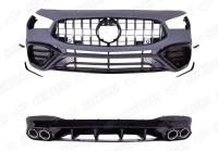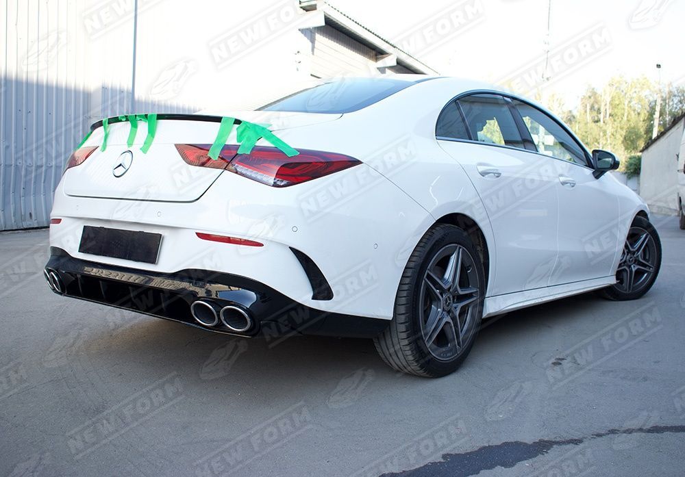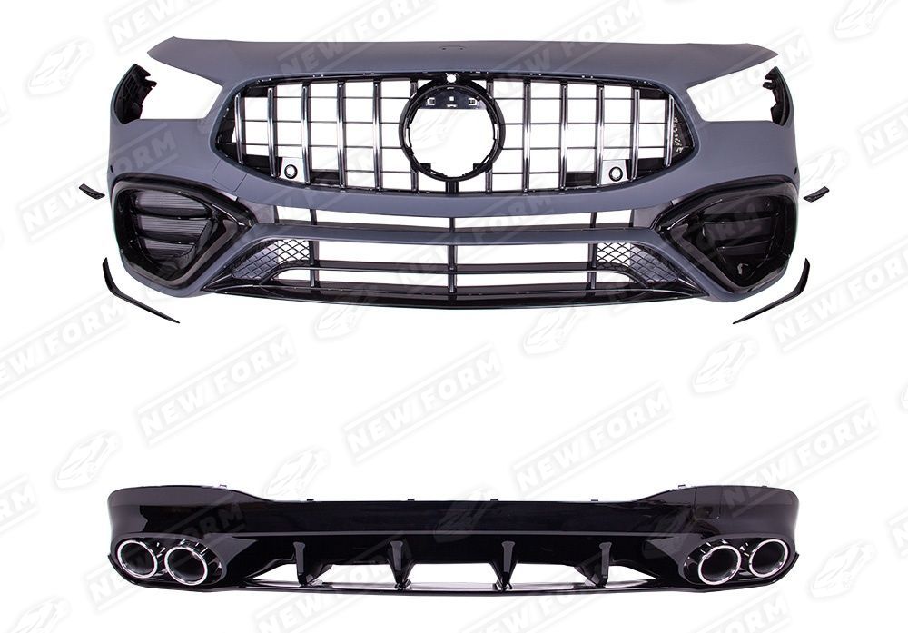 Обвес 4.5 AMG для автомобилей Mercedes CLA C118/X118. Данный тюнинг комплект предназначен для установки на автомобили Mercedes CLA C118/X118 с 2019 года выпуска в AMG пакете. Комплектующие обвеса выполнены из оригинального ABS пластика, насадки на глушитель - нержавеющая сталь. Обвес 4.5 AMG устанавливается четко в штатные места автомобиля без доработок. Передний бампер поставляется под окрас. Решетка радиатора выполнена в цвете хром. Диффузор выполнен в цвете черный глянец, насадки на глушитель хромированные.