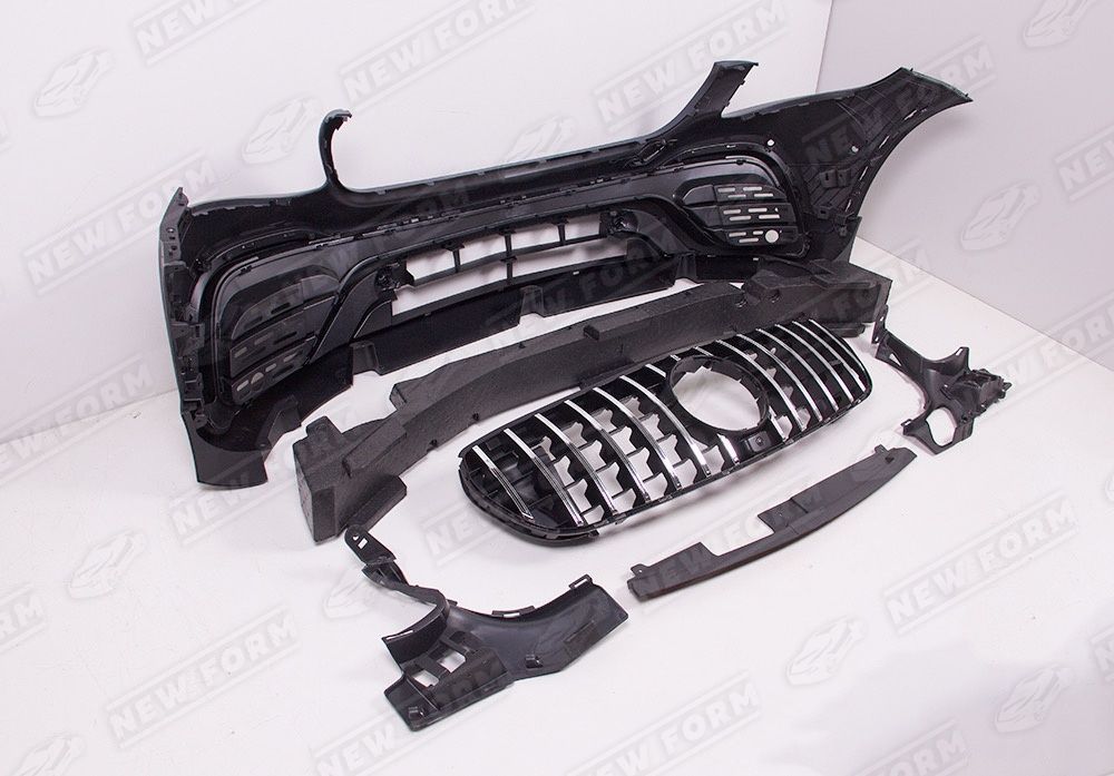 В комплект входит: бампер передний 6.3 AMG, решетка радиатора AMG GT, шильдик в решетку радиатора AMG, диффузор заднего бампера 6.3 AMG, насадки на глушитель 6.3 AMG, комплект крепежа.