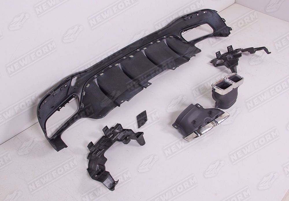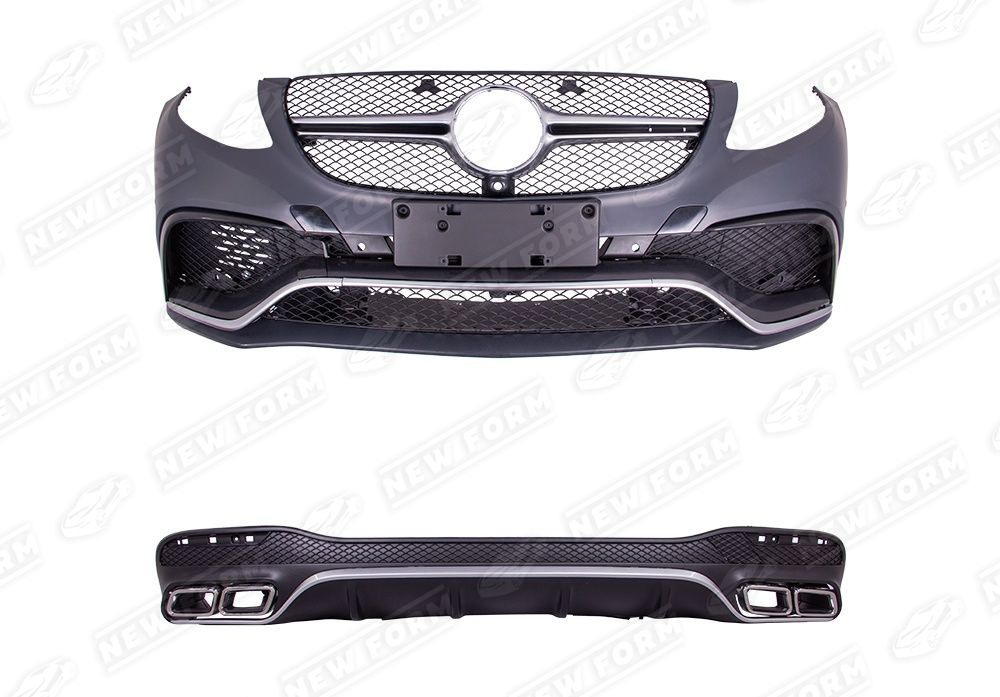 Обвес 6.3 AMG для автомобилей Mercedes GLE W166. Данный обвес позволяет изменить внешний облик автомобиля Mercedes GLE W166 AMG на версию 6.3 AMG. Обвес подходит для автомобилей Mercedes GLE W166 с 2015 по 2018 год выпуска в AMG пакете. Для автомобилей стандартной версии требуется замена заднего бампера. Комплектующие тюнинг комплекта изготовлены из оригинального ABS пластика. Насадки на глушитель - нержавеющая сталь. Обвес устанавливается четко в штатные места без доработок автомобиля. Необходимый для корректной установки обвеса на автомобиль крепеж входит в комплект. Передний бампер поставляется под окрас. Диффузор заднего бампера выполнен в черном цвете. Молдинг в диффузор черный или хромированный на выбор. Насадки на глушитель черные или хром на выбор. На насадки нанесена гравировка AMG.