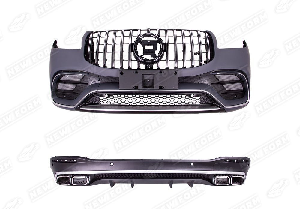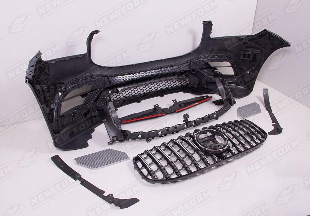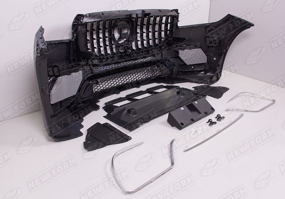В комплект входит: передний бампер в сборе 63 AMG, решетка радиатора AMG GT, диффузор заднего бампера, насадки на глушитель, комплект крепежа.