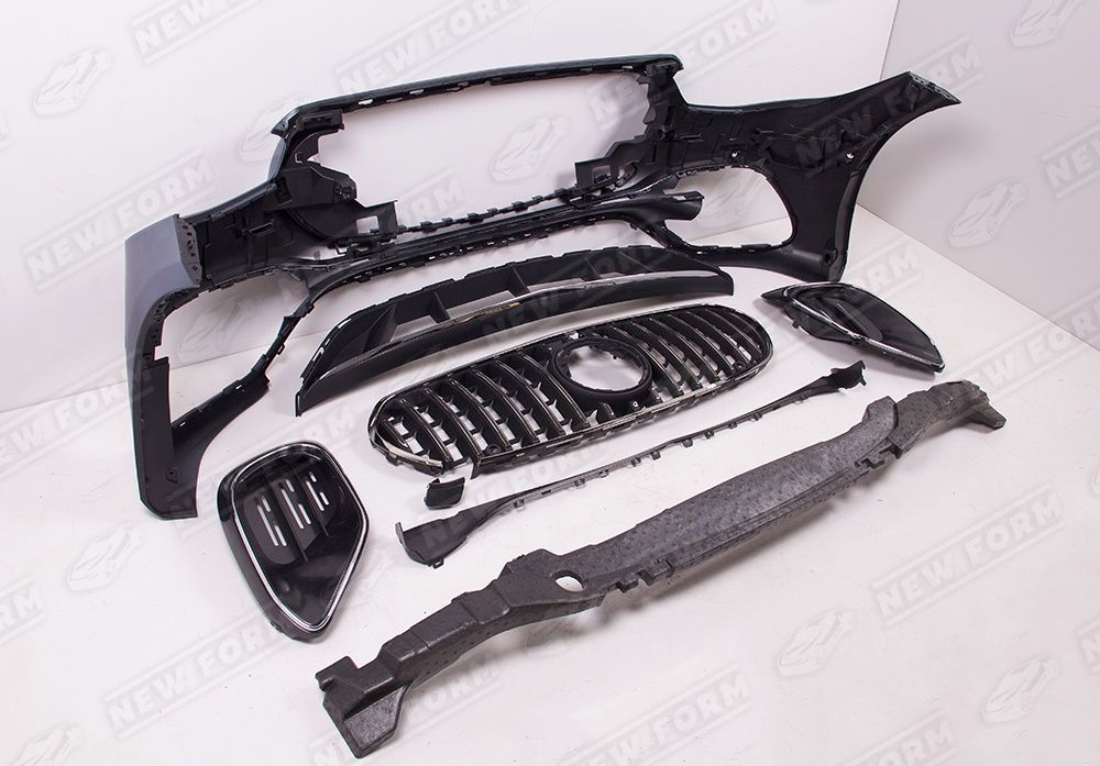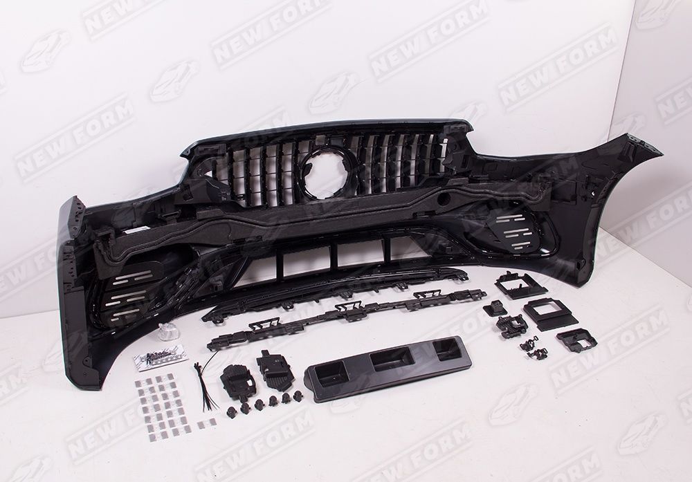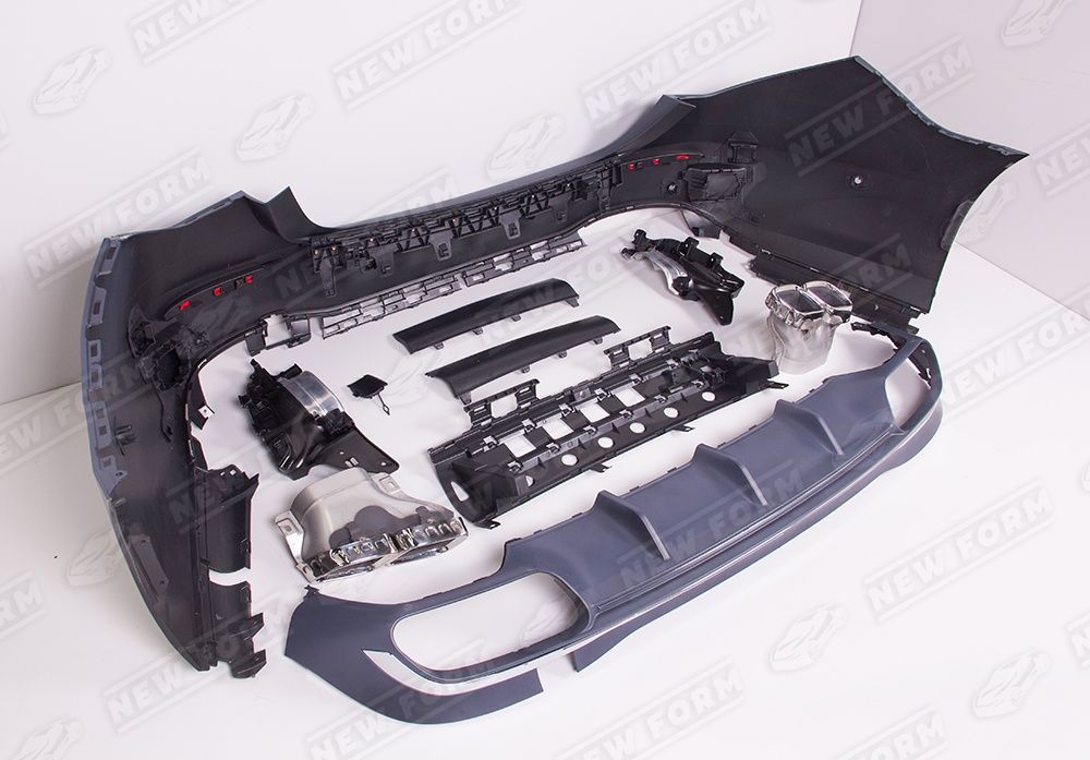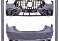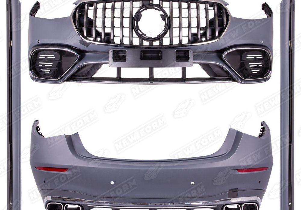В комплект входит: передний бампер 63 AMG, решетка радиатора, боковые пороги, задний бампер 63 AMG, диффузор заднего бампера, насадки на глушитель, комплект крепежа.
