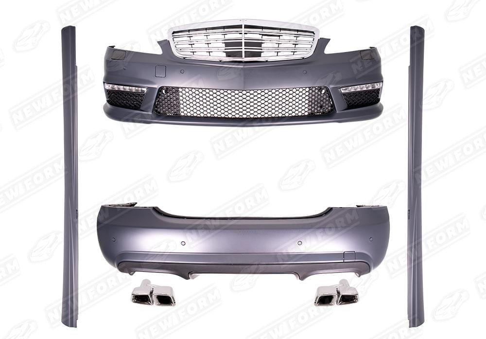 Обвес 6.3 AMG полный для автомобилей Mercedes S-class. Данный тюнинг комплект предназначен установки на автомобили Mercedes S-class W221 с 2005 по 2009 год выпуска. Комплектующие обвеса изготовлены из оригинального ABS пластика. Насадки на глушитель - нержавеющая сталь. Обвес устанавливаются в штатные места без доработок. Обвес поставляется под окрас. Диффузор выполнен в черном цвете. На насадки нанесена гравировка AMG.