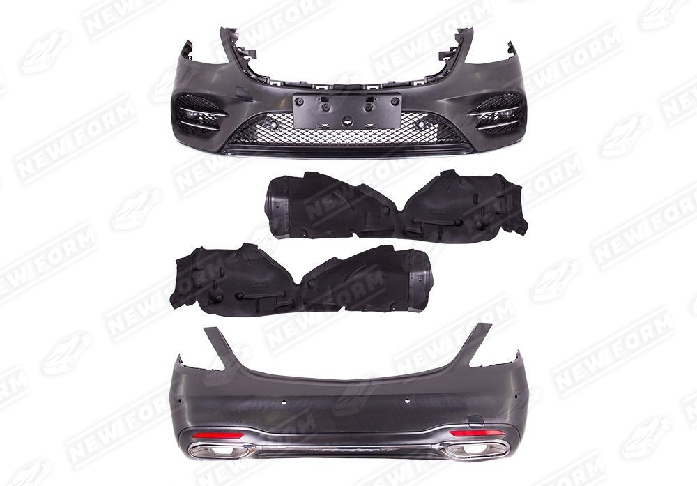 В комплект входит: передний бампер AMG в сборе, задний бампер AMG, диффузор заднего бампера AMG, насадки на глушитель AMG, комплект крепежа.