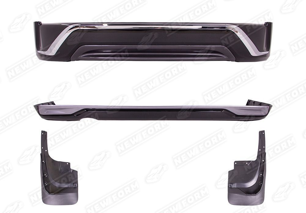 В комплект входит: юбка переднего бампера Executive, юбка заднего бампера Executive, задние брызговики, комплект уплотнительных резинок и крепежа.