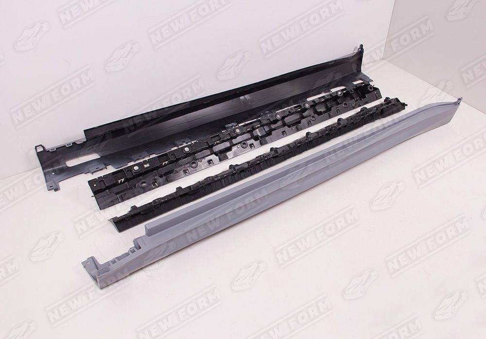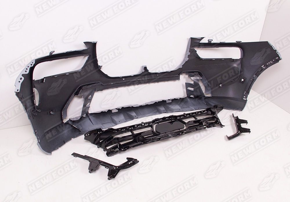 В комплект входит: передний бампер в сборе, решетка радиатора, задний бампер в сборе, боковые пороги, насадки на глушитель, комплект крепежа.