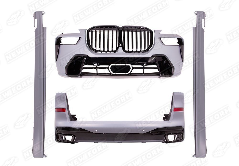 Обвес M пакет для автомобилей BMW X7 G07 рестайлинг. Данный тюнинг комплект предназначен для установки на автомобили BMW X7 G07 рестайлинг с 2023 года выпуска. Комплектующие обвеса выполнены из оригинального ABS пластика. Обвес M пакет устанавливается четко в штатные места без доработок. Весь необходимый для установки крепеж входит в комплект. Комплект поставляется под окрас.