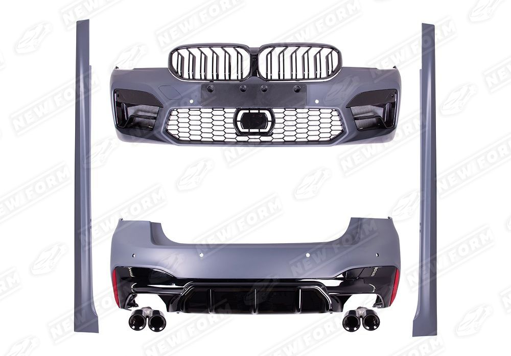 Обвес M5 с черными насадками для автомобилей BMW 5 series G30 рестайлинг. Данный тюнинг комплект предназначен для установки на автомобили BMW 5 series G30 рестайлинг с 2020 года выпуска. Обвес позволяет изменить внешний облик автомобиля обычной версии на версию M5. Аэродинамический обвес М5 изготовлен из оригинального ABS пластика, насадки на глушитель - нержавеющая сталь. Комплектующие обвеса M5 устанавливаются четко в штатные места автомобиля без доработок. Весь необходимый для корректной установки тюнинг комплекта крепеж входит в комплект. Обвес поставляется частично под окрас. Насадки на глушитель выполнены в черном цвете.