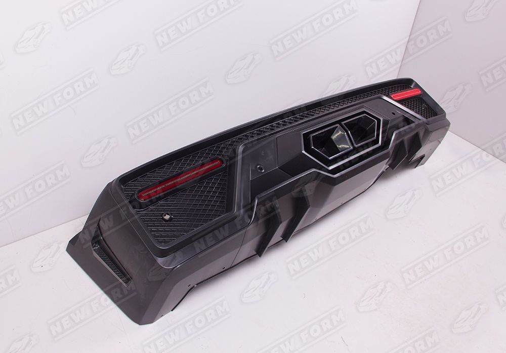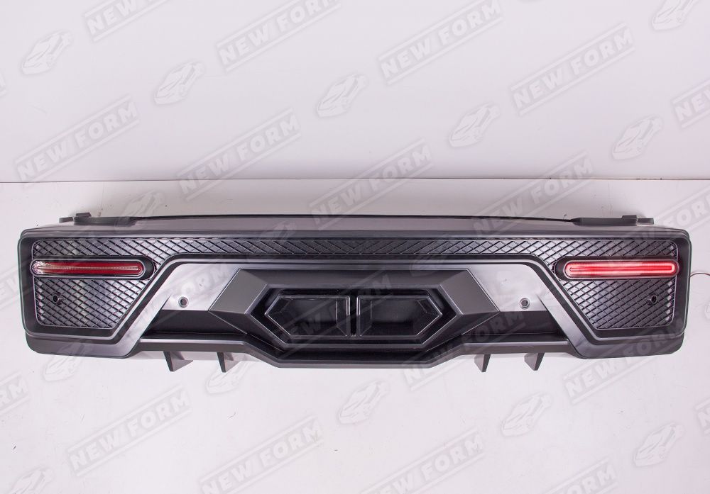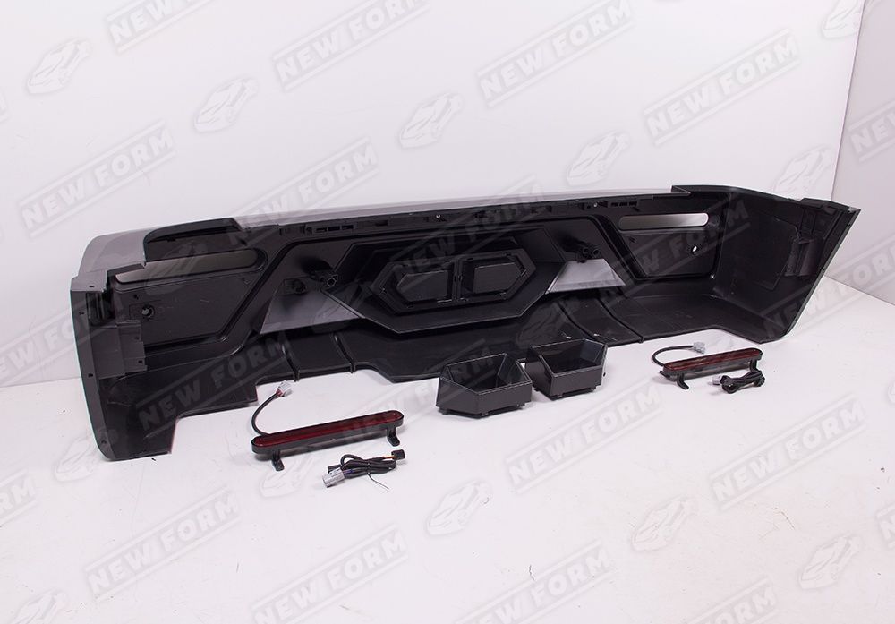 В комплект входит: передний бампер, решетка радиатора, накладка на капот, задний бампер, накладка на крышу с ходовыми огнями и задним спойлером, крышки зеркал, расширители колесных арок, пороги, накладка на 5 колесо, комплект крепежа.