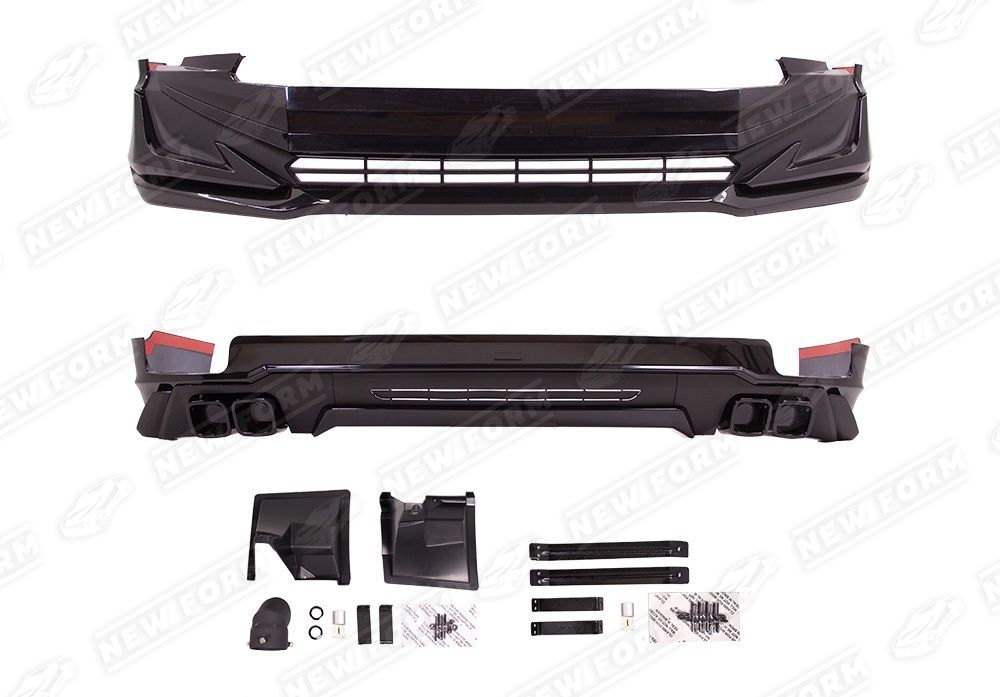 Обвес Modellista черный с черным молдингом для автомобилей Toyota Land Cruiser Prado 150. Данный тюнинг комплект предназначен для установки на автомобили Toyota Land Cruiser Prado 150 с 2017 года выпуска. Обвес изготовлен из оригинального ABS пластика, насадки на глушитель - нержавеющая сталь. Комплектующие обвеса устанавливаются в штатные места без доработок. Обвес выполнен в черном цвете, молдинг черный.