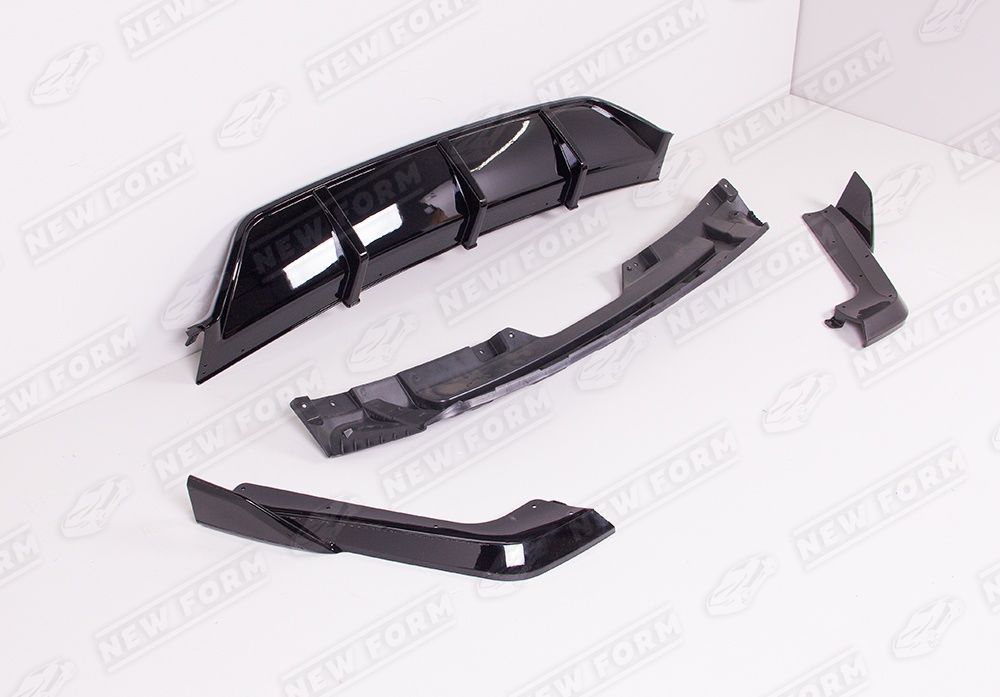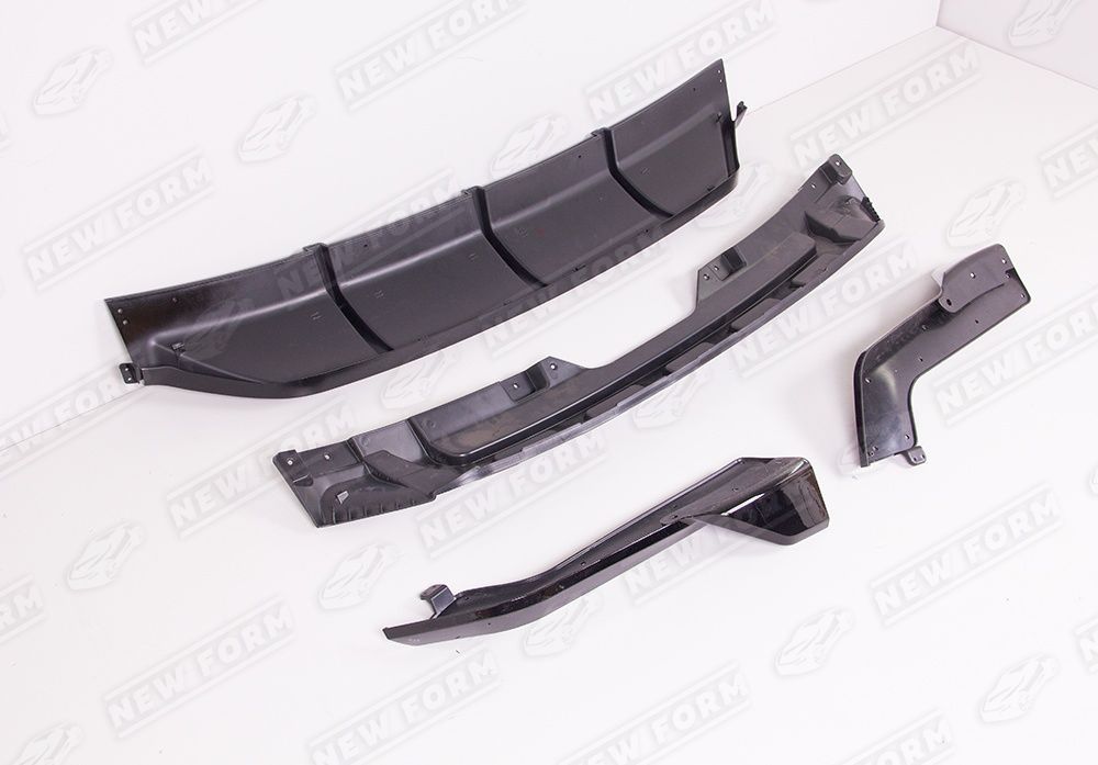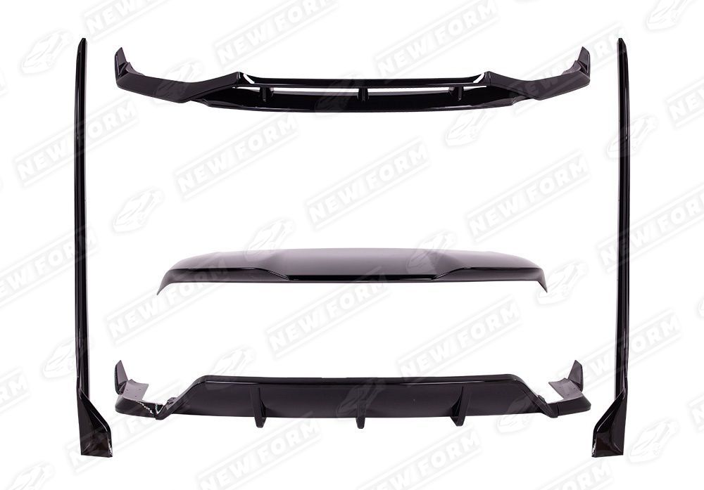 В комплект входит: сплиттер переднего бампера, юбка заднего бампера, спойлер, боковые накладки на пороги, комплект крепежа.