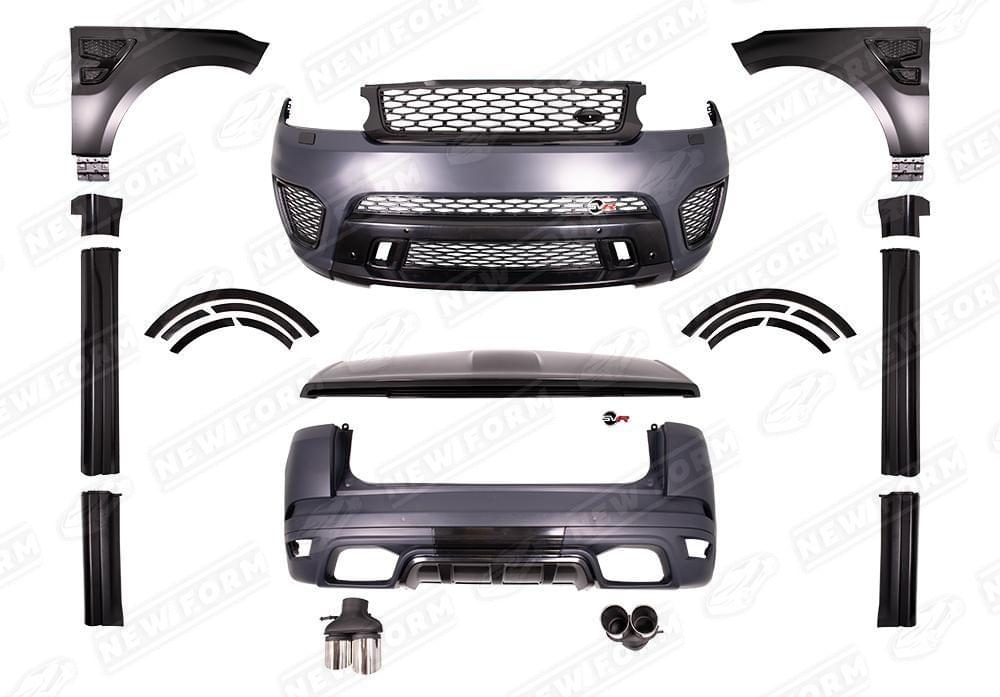 Обвес SVR полный для автомобилей Range Rover Sport. Данный тюнинг комплект предназначен для автомобилей Range Rover Sport с 2013 по 2017 год выпуска. Обвес позволяет изменить внешний облик автомобиля стандартной версии в версию SVR. Комплектующие обвеса изготовлены из оригинального ABS пластика, насадки на глушитель - нержавеющая сталь. Обвес SVR устанавливается четко в штатные места без доработок. Комплект поставляется под окрас.