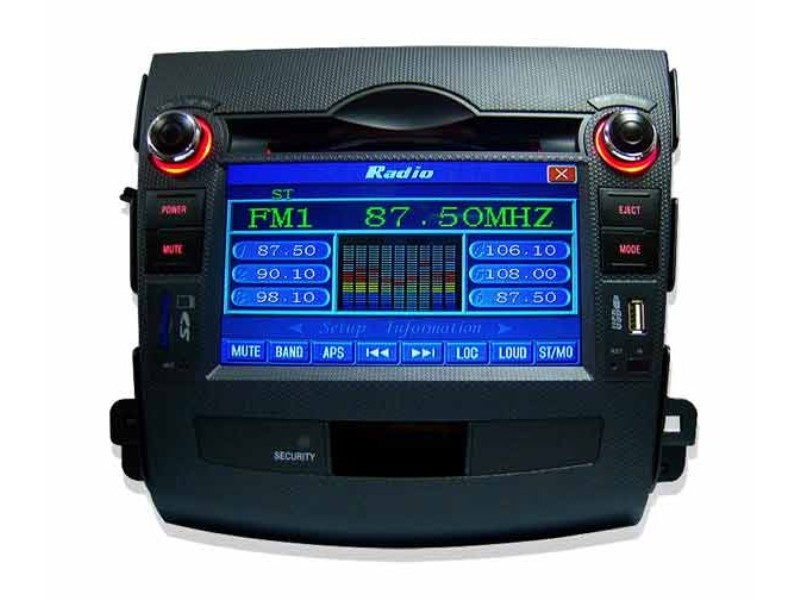 Головное устройство с проигрывателем DVD/MP4/DIVX/CD/MP3 для Mitsubishi Outlander XL. Точно совпадает по размерам с штатным головным устройством. USB порт и слот для SD карт, Bluetooth.
