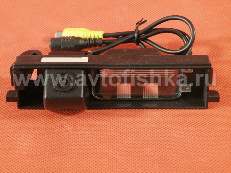 Цветная видеокамера заднего обзора с разметкой для подключения разъем-в-разъем к мультимедийным головным устройствам. Чувствительность позволяет получить качественное изображение даже при невысокой освещенности (0,2 лк), модель имеют водонепроницаемое исполнение, угол обзора видеокамеры увеличен до 170 градусов. Камера устанавливается снаружи вместо фонаря освещения номерного знака, при этом сама подсветка не теряется.