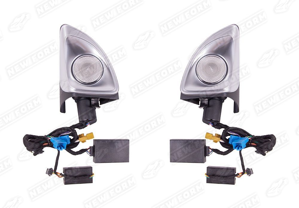 Динамики Burmester 4D для автомобилей Mercedes GLC X253 рестайлинг. Данный комплект динамиков салона предназначен для установки на автомобили Mercedes GLC X253 рестайлинг с 2019 года выпуска по настоящее время. Динамики Burmester поддерживают 64 режима подсветки салона и обеспечивают звук высокого качества. Динамики устанавливаются четко в штатные места салона автомобиля без доработок. Необходимая для корректного подключения динамиков Burmester проводка входит в комплект.