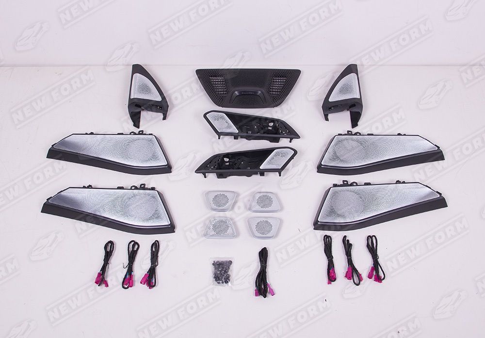 Комплект дооснащения Bowers&Wilkins для автомобилей BMW X5 G05. Данный комплект предназначен для установки на автомобили BMW X5 G05 с 2018 по 2023 год выпуска. Комплект дооснащения устанавливается в штатные места автомобиля без доработок. Комплект Bowers&Wilkins состоит из 13 элементов. Необходимые для корректной установки на автомобиль крепежные элементы и проводка входят в комплект.