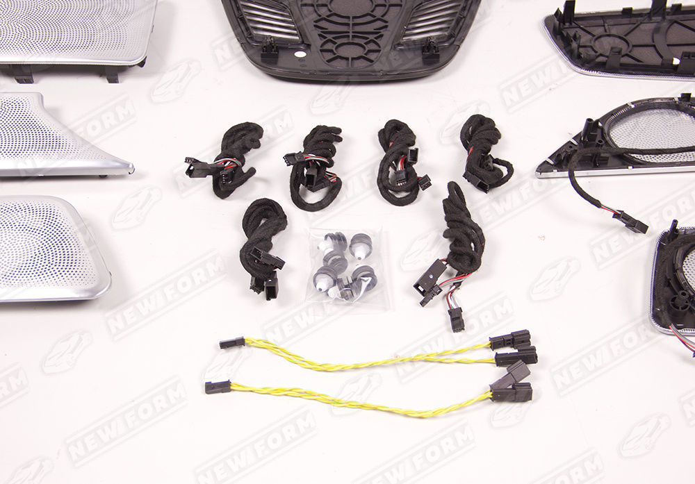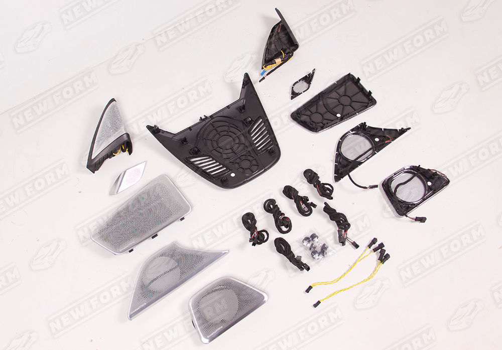 Комплект дооснащения Bowers&Wilkins для автомобилей BMW 5 series G30. Данный комплект предназначен для установки на автомобили BMW 5 series G30 с 2016 года выпуска. Комплект дооснащения устанавливается в штатные места автомобиля без доработок. Комплект Bowers&Wilkins состоит из 11 элементов. Необходимые для корректной установки на автомобиль крепежные элементы и проводка входят в комплект.