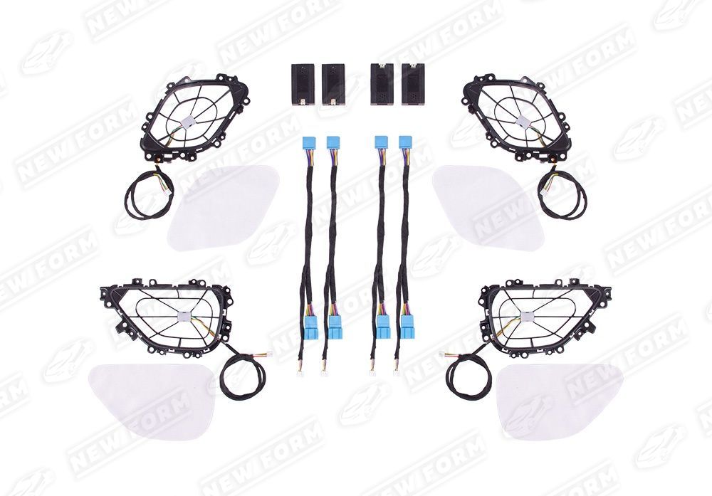 В комплект входит: 4 элемента подсветки передних дверей, проводка для подключения, комплект крепежа.