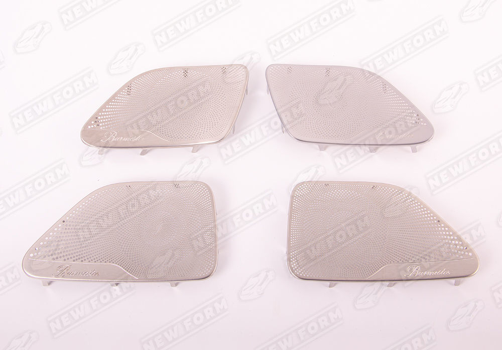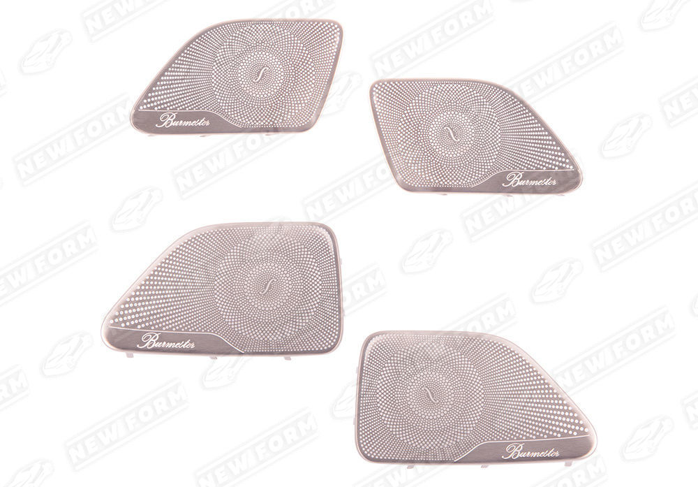 Сетки Burmester для автомобилей Mercedes S-class W222. Данный комплект декоративных сеток предназначен для установки на автомобили Mercedes S-class W222 с 2013 по 2017 год выпуска. Сетки Burmester устанавливаются четко в штатные места дверей автомобиля без доработок.
