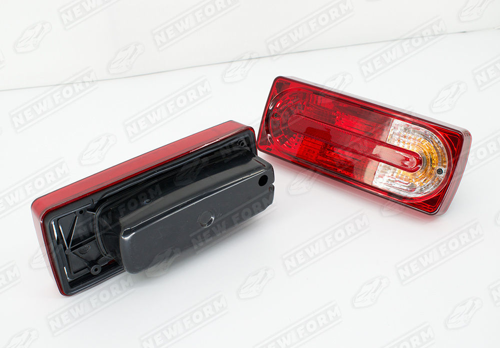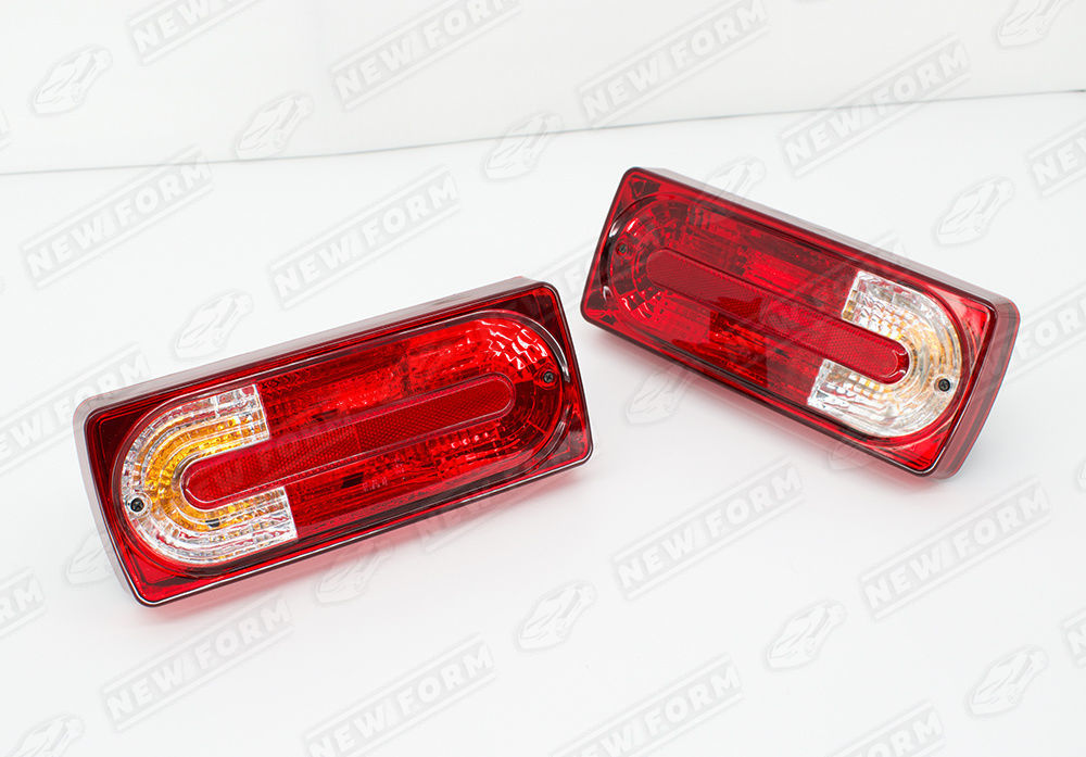 Фонари задние рестайлинговые динамические для автомобилей Mercedes G-class W463. Данный комплект фонарей предназначен для установки на автомобили Мерседес Гелендваген с 1990 по 2018 год выпуска. Задние фонари устанавливаются четко в штатные места автомобиля без доработок. Необходимая для корректного подключения динамических фонарей проводка входит в комплект. Задние фонари выполнены в красном цвете.