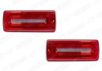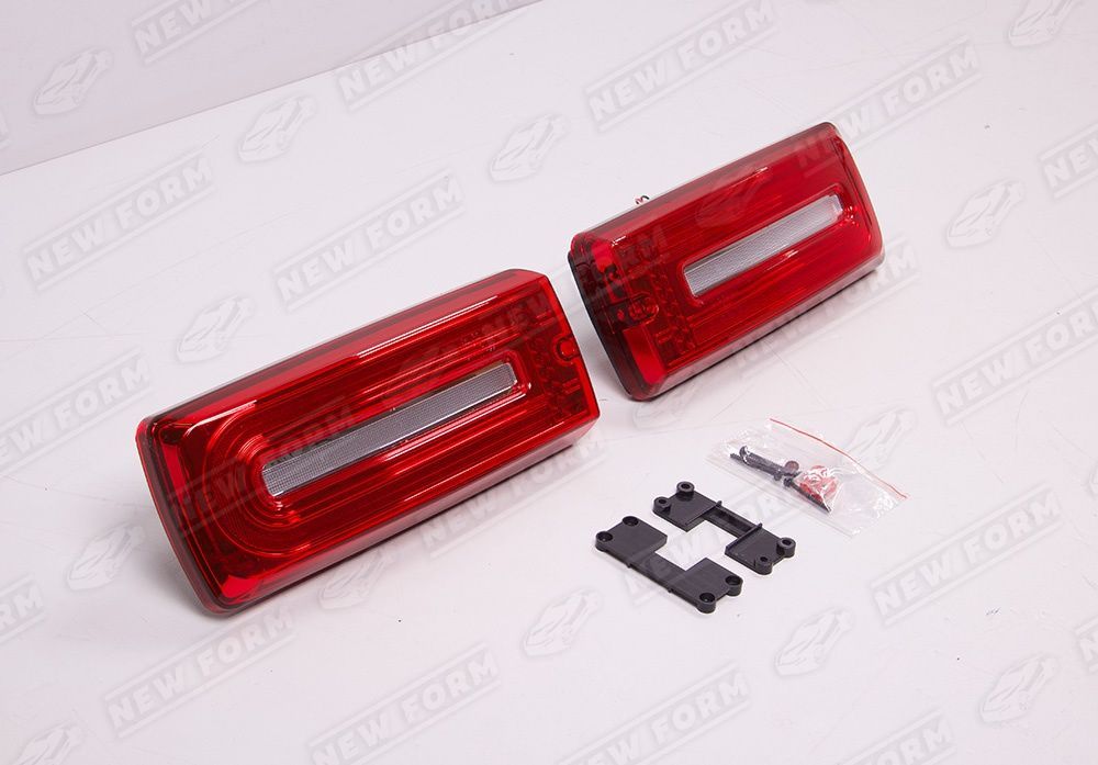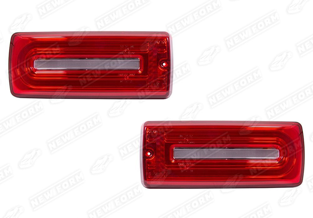 Фонари задние красные стиль 2018 для автомобилей Mercedes G-class W463. Данный комплект фонарей предназначен для установки на автомобили Мерседес Гелендваген с 1990 по 2018 год выпуска. Задние фонари устанавливаются четко в штатные места автомобиля без доработок. Необходимая для корректного подключения фонарей проводка входит в комплект. Задние фонари выполнены в красном цвете.