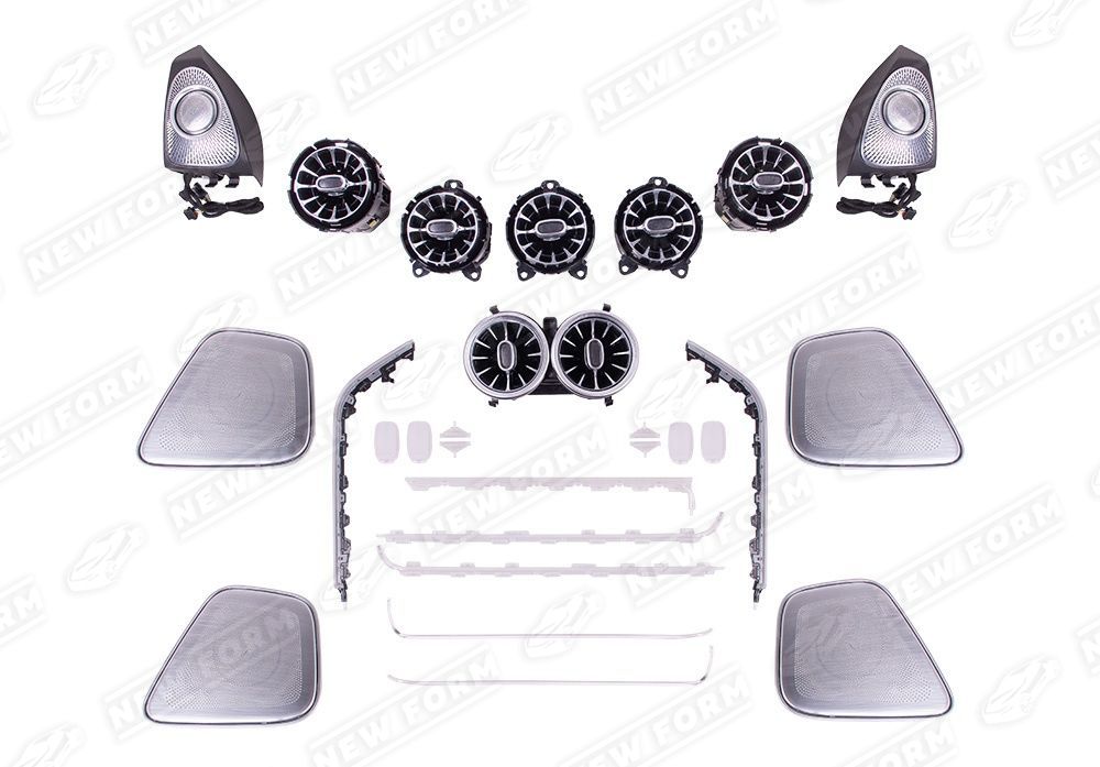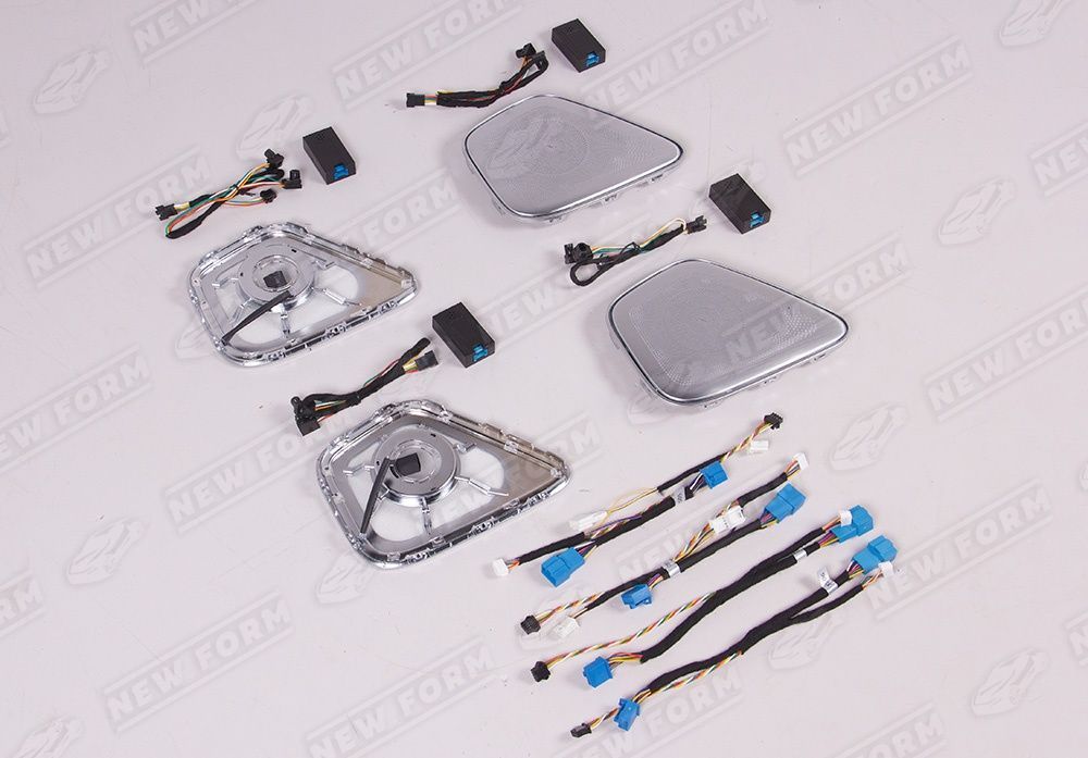 В комплект входит: воздуховоды передние 5 шт., воздуховоды задние, динамики Burmester, сетки боковые Burmester, установочный комплект.
