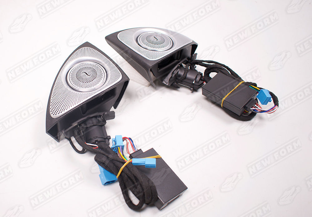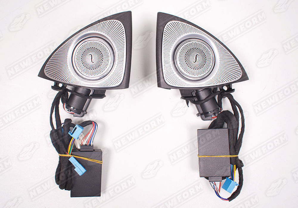 В комплект входит: 4 элемента передних воздуховодов, 2 боковых воздуховода, 2 задних воздуховода, 2 боковых динамика Burmester, проводка для подключения.
