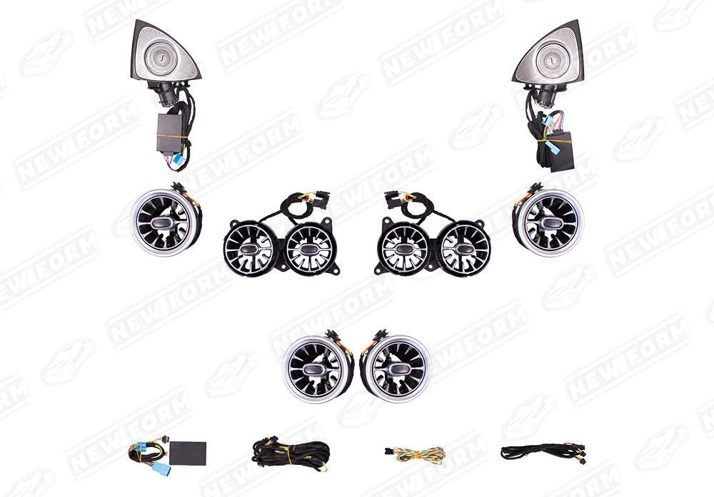 Комплект дооснащения салона для автомобилей Mercedes S-class W222. Данный тюнинг комплект предназначен для установки на автомобили Mercedes S-class W222 с 2013 по 2017 год выпуска. Комплект дооснащения устанавливается четко в штатные места салона без доработок. Необходимые для корректной установки проводка и блоки входят в комплект. Динамики Burmester и воздуховоды поддерживает 7 режимов подсветки салона.