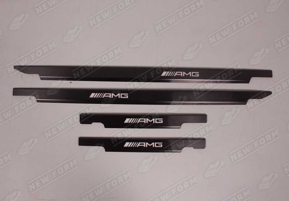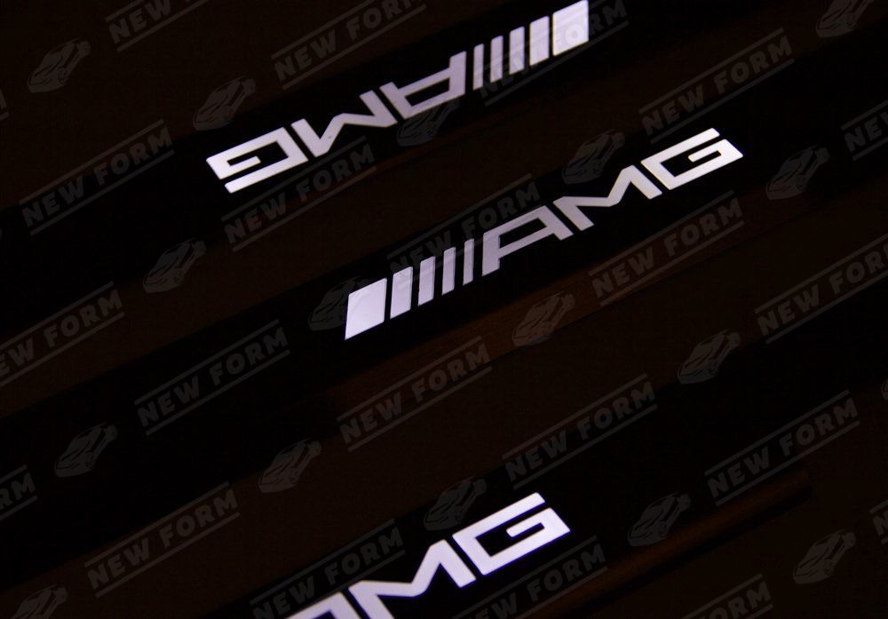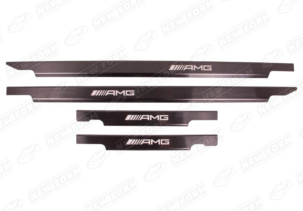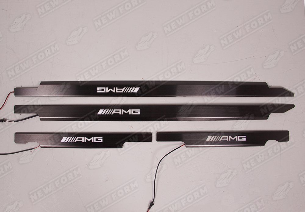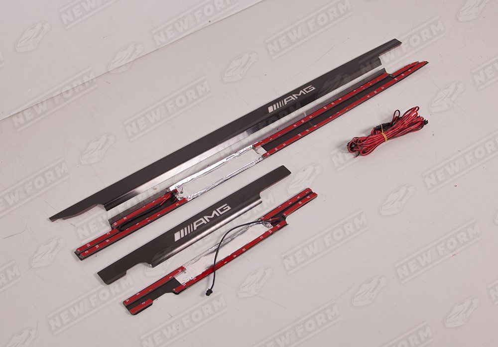 В комплект входит: четыре накладки на пороги AMG, проводка для подключения.