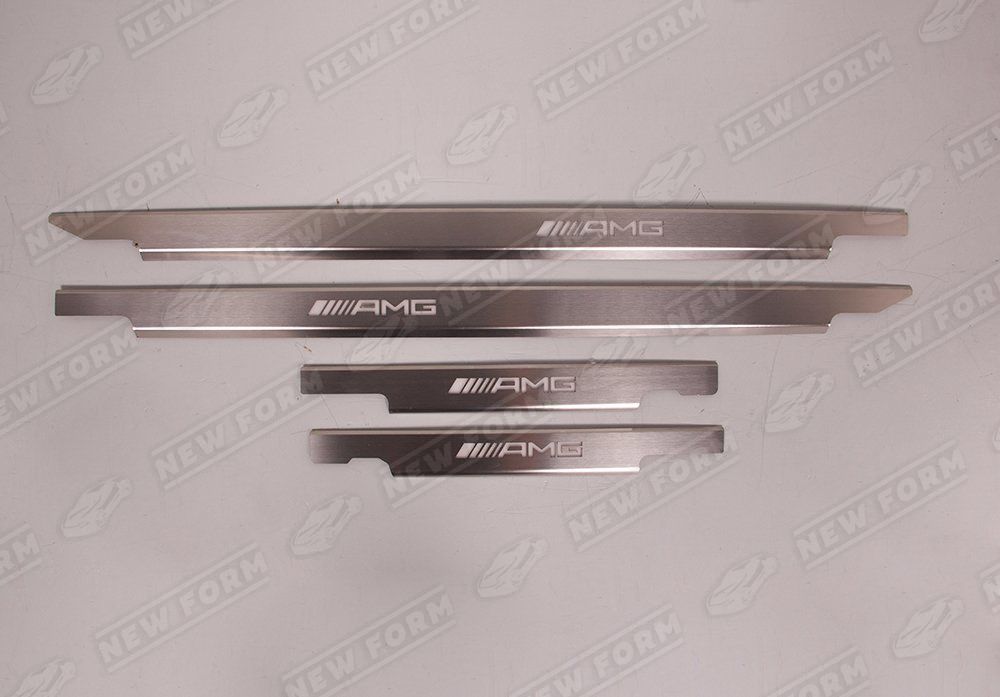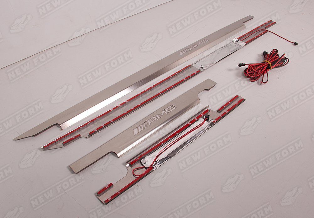 В комплект входит: четыре накладки на пороги AMG, проводка для подключения.