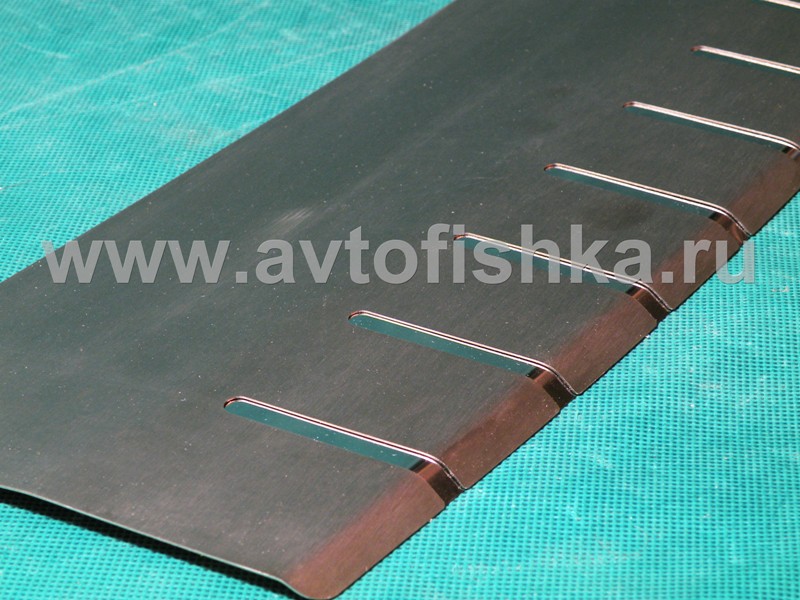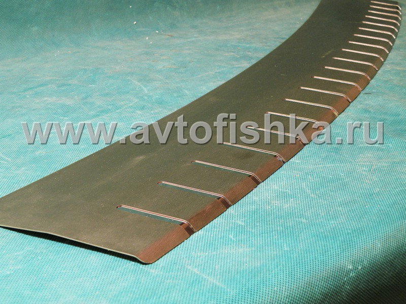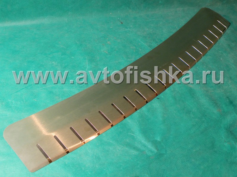 Основной функцией накладки на задний бампер является защита лакокрасочного покрытия бампера от царапин и повреждений, появляющихся при разгрузке багажного отделения автомобиля. Накладка на задний бампер отлично вписывается в экстерьер автомобиля и очень хорошо дополняет установленный на автомобиле заводской хром пакет. Накладка на задний бампер, так же как и накладки на пороги изготовлены из нержавеющей стали индивидуально для каждого автомобиля. Толщина стали у накладки на задний бампер примерно 0.8 мм, что позволяет без опасений ставить на нее всякого рода груз. Защитная накладка на задний бампер обеспечивает Вашему автомобилю агрессивный неповторимый стиль. Благодаря применению современной технологии предлагаем наш самый новый продукт - профилированную накладку с загнутой кромкой, которая создаст ещё более эффективную защиту Вашему автомобилю.