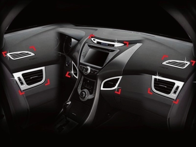 Hyundai Elantra, Avante MD (10-) хромированные накладки панелей салона и торпеды, 13 предметов